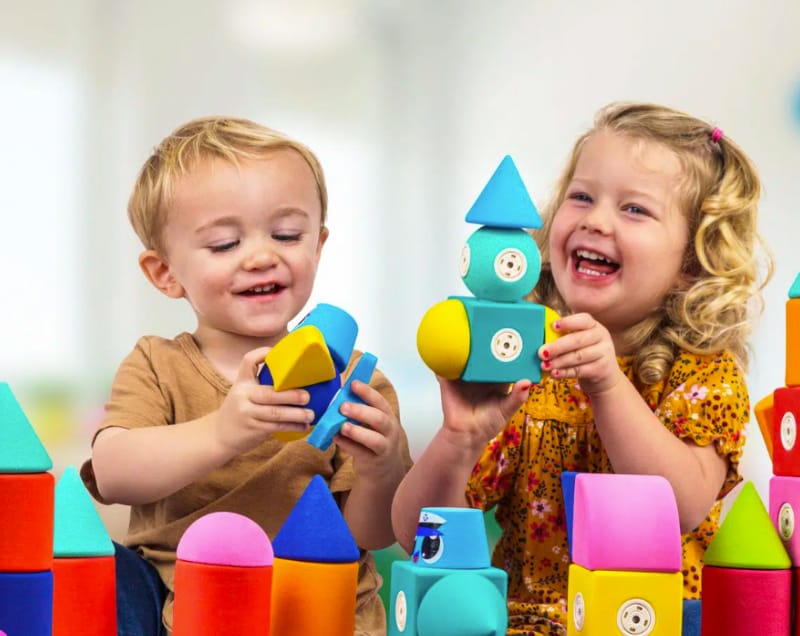 Vahvad puidust, vahust ja plastikust klotsid, mis arnedavad last.
