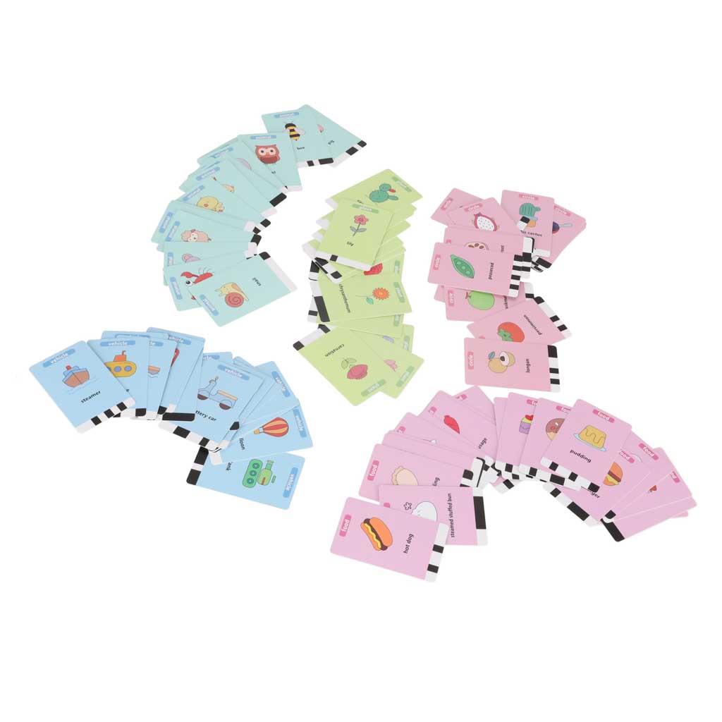 – 100 illustreeritud temaatilist kaarti (sõidukid, taimed, loomad, kujundid, toit)