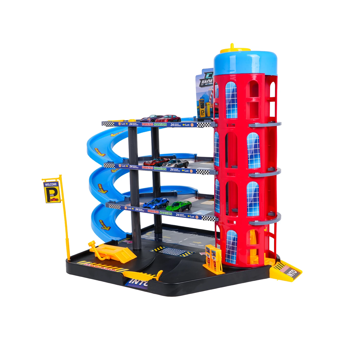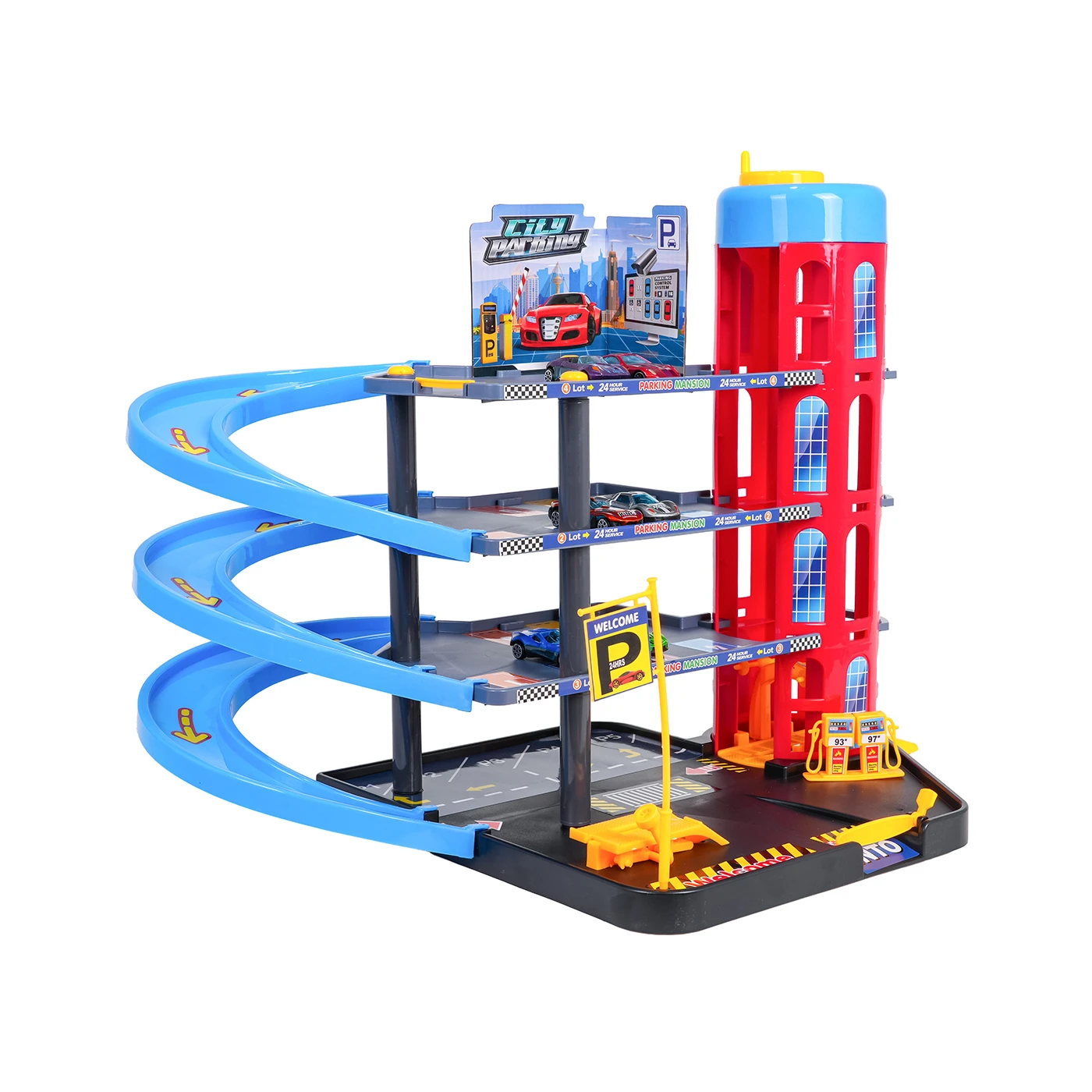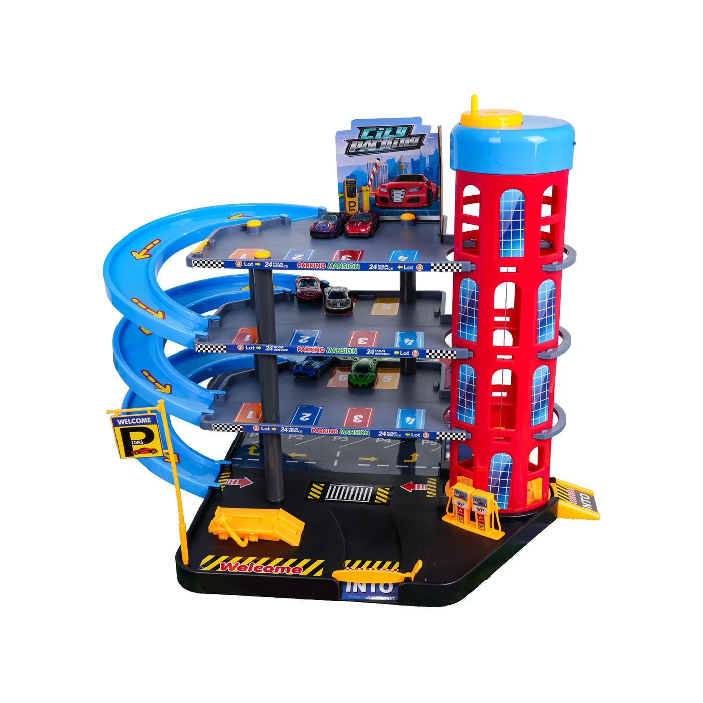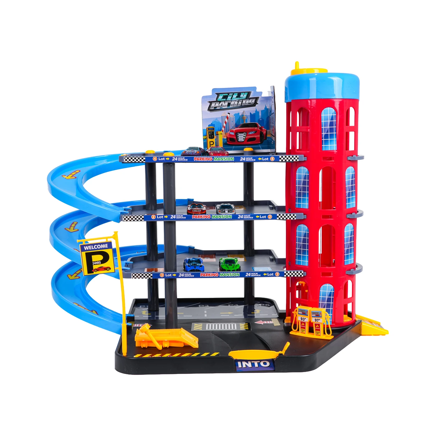 Suur parkla lifti, ralliraja ja mängumatiga. Parklas on mitu tasandit, kuhu pääseb liftiga. Mitmekorruselisel parklas on parkimiskohad, bensiinijaam ja autotõstuk. Lifti juhitakse käsitsi (vändaga).