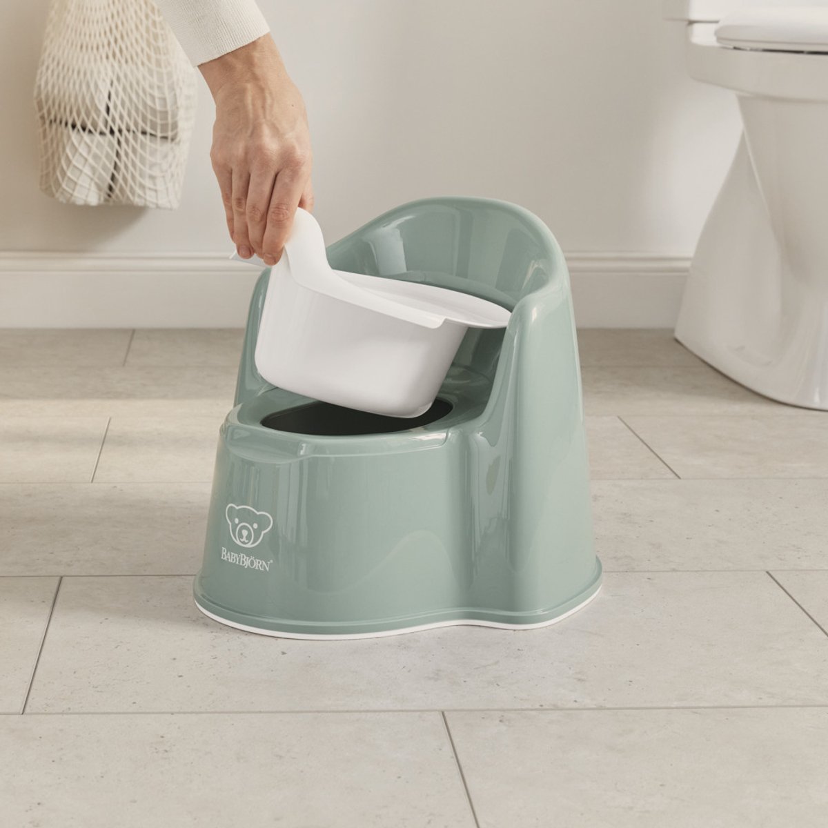 Laia seljatoe ja mugavate käetugedega BabyBjörn pissipott on mugav elu alustamiseks ilma mähkmeteta.