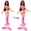Sukeldu lõbusatesse seiklustesse Barbie Lillemaagia Merineitsi nukuga! Libista nuppu tema seljal ja vaata, kuidas lilled võluväel õitsevad! Mängida saab nii maal kui ka vees, et nautida kaunist õitsevat vaatepilti päikese käes või vee all. Oma sillerdavate lillede, värviliste uimedega ja pärlitega peapaelaga, mis kaunistab tema roosade salkudega pikki brünette juukseid, on see Barbie merineitsi nukk sama lummav kui veealune aed.