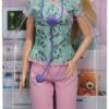 Õde Barbie (30 cm pikkune nukk) on riietatud trendikatesse tööriietesse: meditsiiniseadmete mustriga pluus, roosad püksid ja valged kingad. Ta kannab sirgeid juukseid hobusesabas. Kaela ümber ripub stetoskoop. Suurepärane kingitus lastele vanuses 3 aastat ja vanemad.