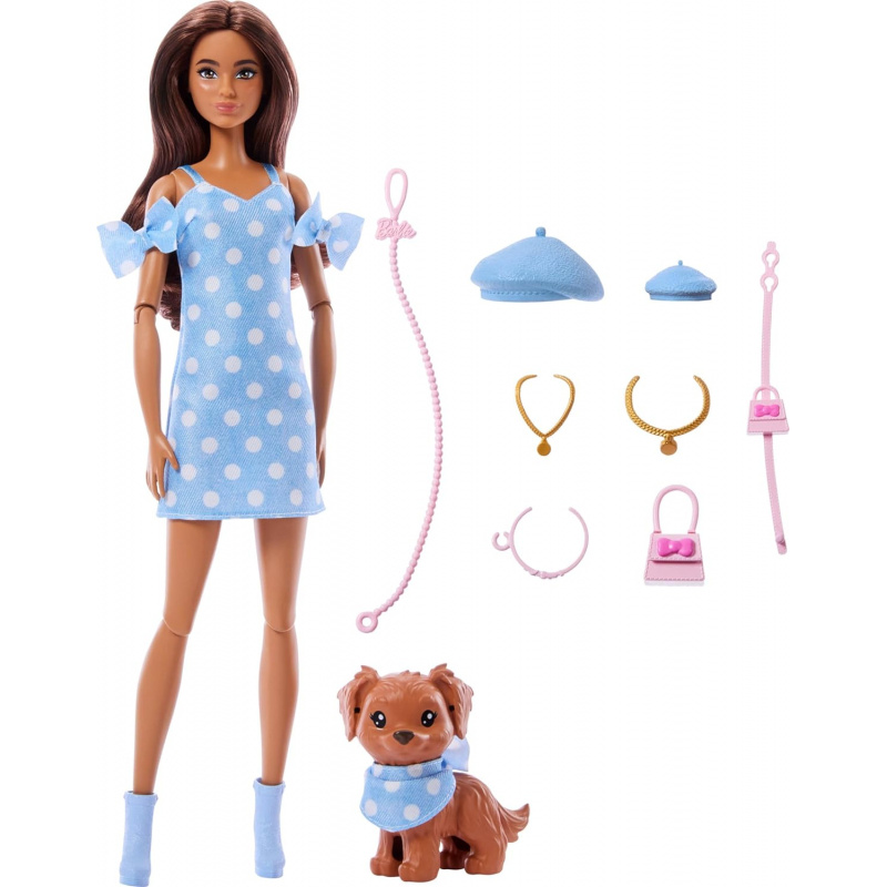 Kahekordne stiililõbu! Igal Barbie nukul on kaasas oma armas väike koerake, kes on sarnaselt riietatud. Komplektis on ka stiilsed aksessuaarid nii Barbiele kui ka tema lemmikule, et kujundada paarile ühesugune välimus pealaest jalatallani!