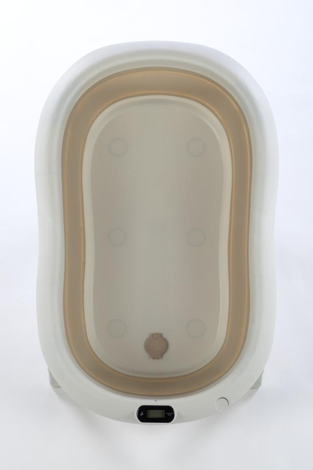 Vann on väga kompaktne ning käib kokku tänu spetsiaalsetele silikoondetailidele. Lisaks on vanni põhjas vee äravoolu klapp. Vannil on kokkuklapitavad jalad. Veelgi enam – tootel on spetsiaalselt sobiv istumisalus komplektis – seda ei ole vaja eraldi juurde osta.