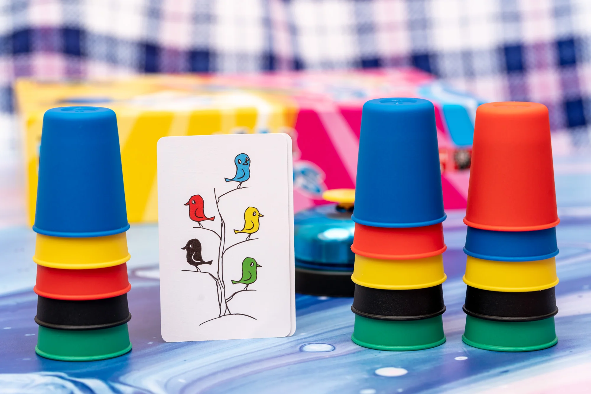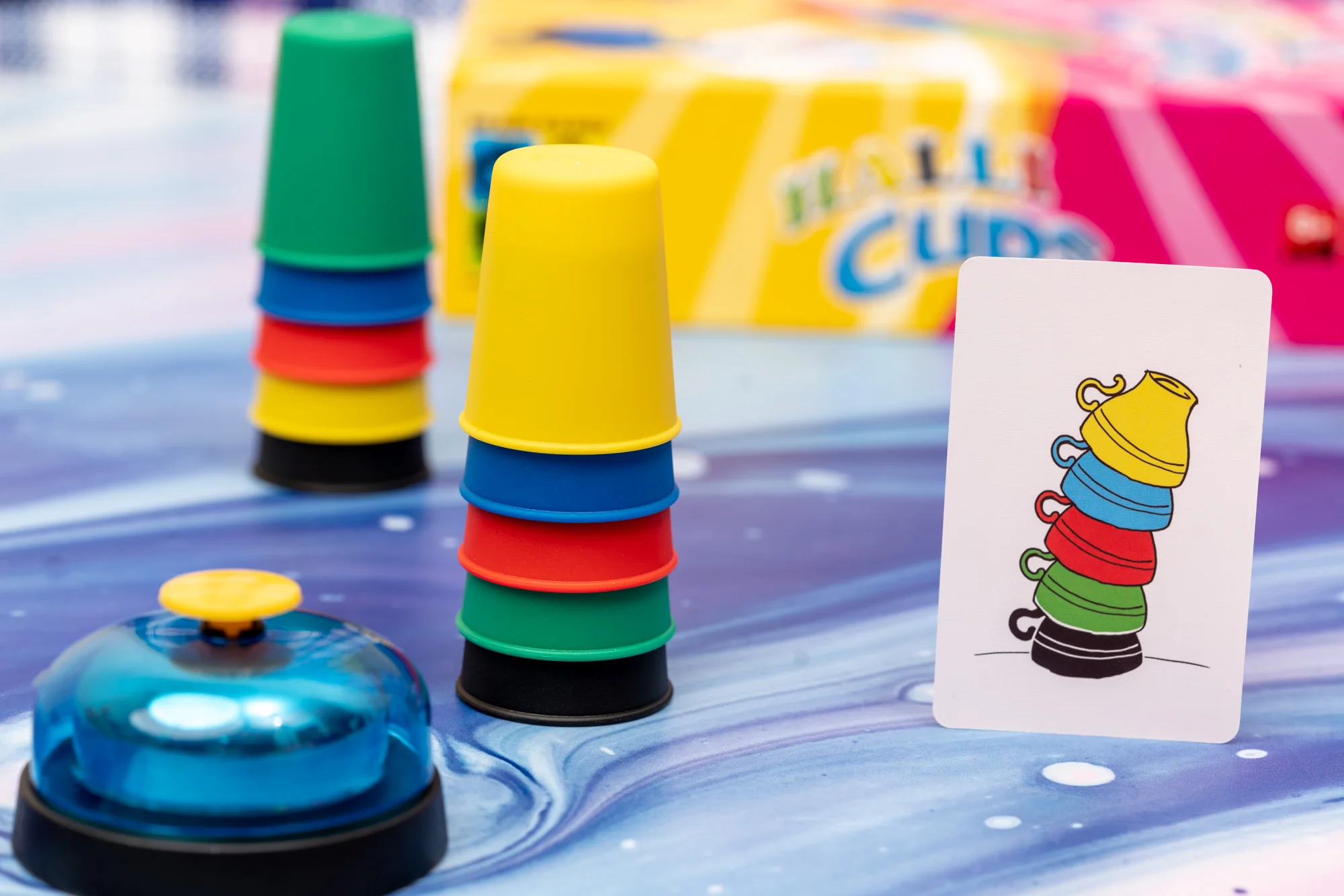“Halli Cups” on lõbus tähelepanu-, kiirus- ja reaktsioonimäng, kus mängijad täidavad kaartidel näidatud ülesandeid, pannes värvilisi topse õigesse järjekorda. Lõbus koguperemäng, kus igal mängijal on viis plasttopsi, igaüks eri värvi. Üks mängija avab paki ülemise kaardi, millel on kujutatud värvilisi objekte – ronge, linde, topse jne –, mis on reastatud vertikaalselt või horisontaalselt. Seejärel püüavad kõik mängijad seada oma topsid samasse järjekorda. Esimene mängija, kellel see korda läheb, helistab kella ning kui ta lahendus on õige, saab ta kaardi endale. Seejärel avab keegi järgmise kaardi ja mängijad hakkavad uuesti topse seadma.