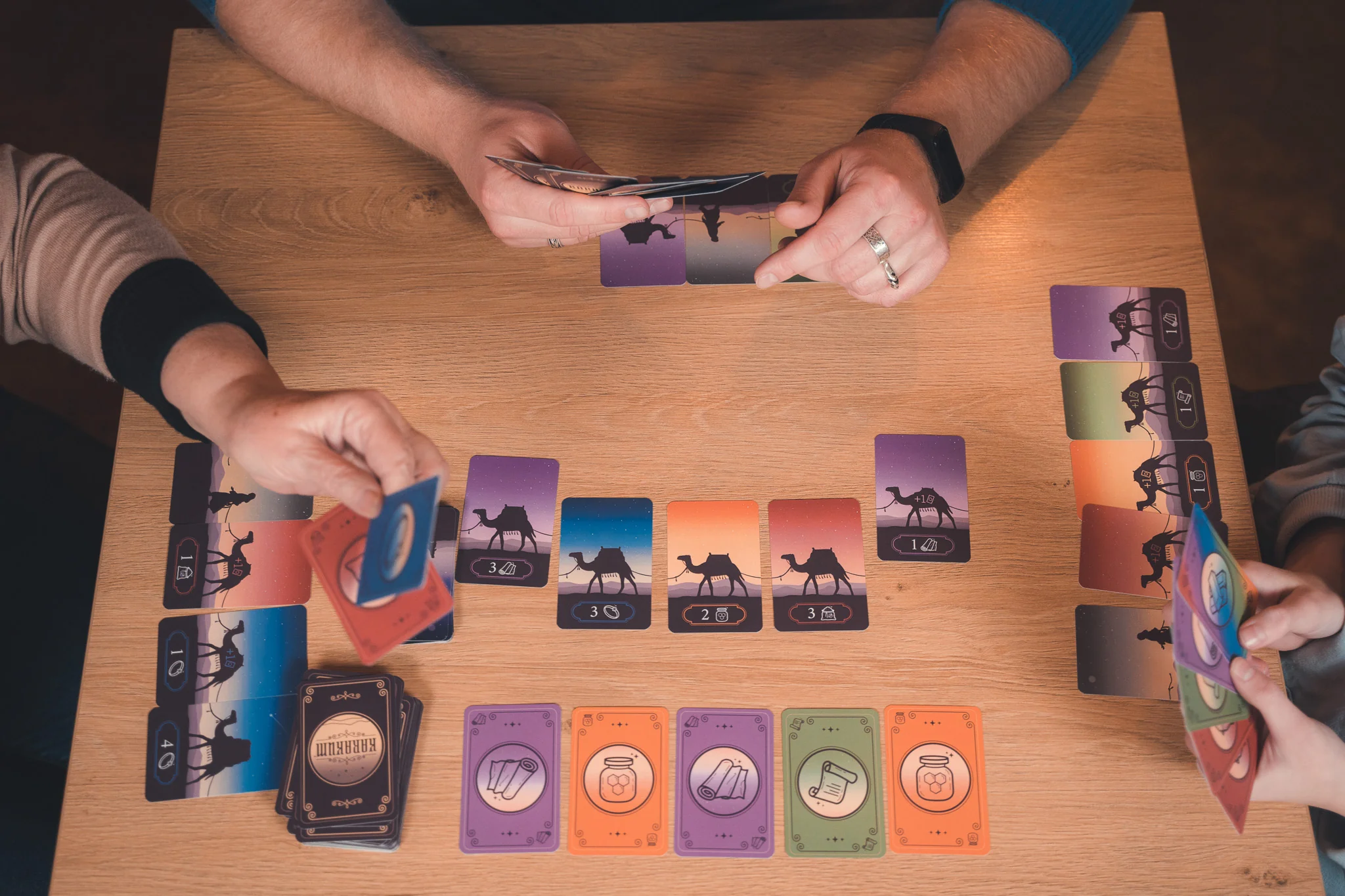 Karakum on avatud kaartide valimise ja ressursside haldamise mäng, kus mängijad ostavad kaameleid ja asetavad neid oma karavani. Aga siin on mängu trikk! Karavani lisatavad loomad peavad olema sama värvi või sama väärtusega, kui sinna viimati lisatud kaamel.