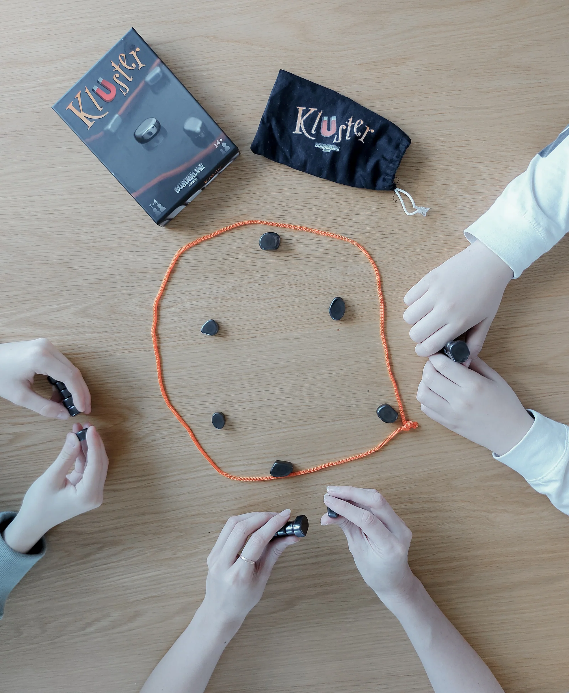 Kluster on osavusmäng 1-4 mängijale, väga lühike, hõlpsasti transporditav, uskumatult lõbus, tõeliselt lihtne, kõigile kättesaadav ja siiski täis strateegiat! Klusteri reeglid on hetkega seletatavad: Magnetkivid jagatakse võrdselt mängijate vahel, kes omakorda peavad asetama ühe kivi nööriga piiritletud alale. Võidab mängija, kes esimesena oma magnetitest lahti saab. Kuid ole ettevaatlik, kui ühe mängija käigu ajal kivid kokku tõmbuvad, peab ta need endale võtma. Võidab see kes saab esimesena oma mangnetid ära paigutatud.