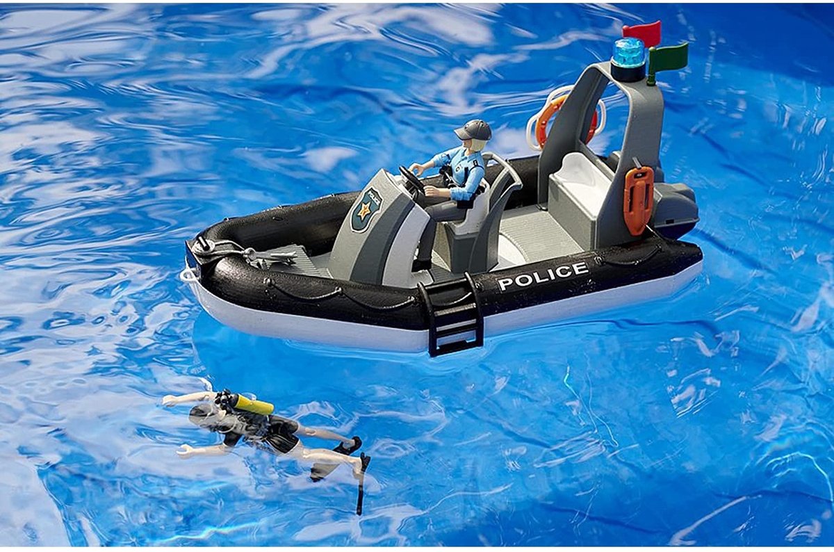 Bruder Dodge Ram politseiautoga tunneb laps end nagu päris politseinik. Nii maal kui ka vees on politseil kõik kontrolli all! Dodge Ramil on haagis politseipaadiga ning masina juurde kuuluvad ka valgus- ja heliefektid.