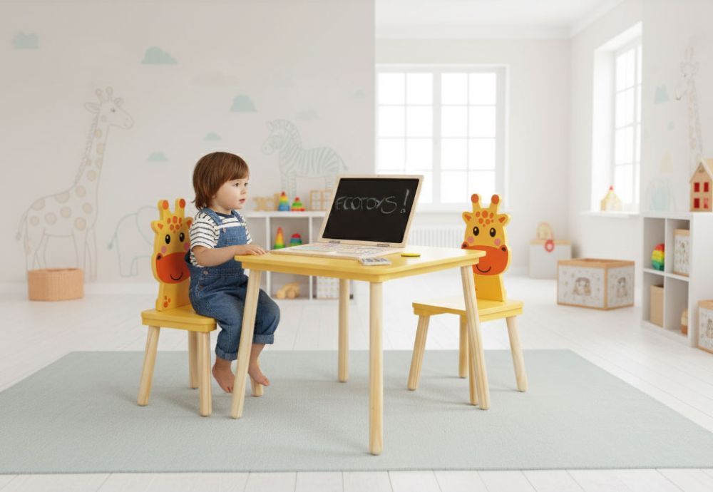 Ecotoys lastetoa laud ja toolid “Kaelkirjak”