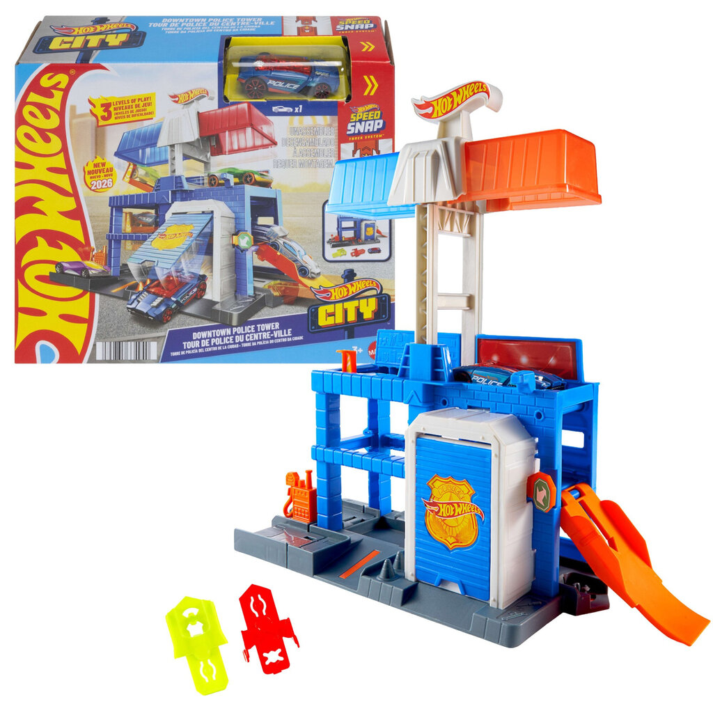 Hot Wheels City politseijaoskond on põnev mitmetasandiline mängukomplekt, kus lapsed saavad luua kõrge kiirusega politseijälitamisi, julgeid kurjategijate kinnipidamisi 1:64 mõõtkavas autodega.