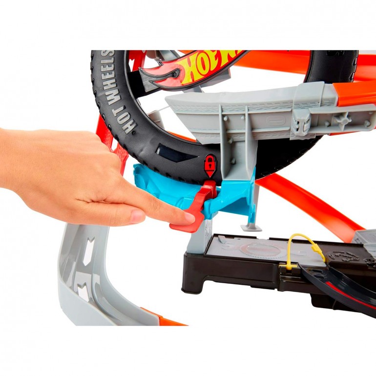 Hot Wheels City pöörleva rehvi rada paneb rehvivahetuskiiruse tõeliselt proovile! See interaktiivne, mootoriga komplekt sobib suurepäraselt mitme autoga mängimiseks. Pane autod rajale sõitma, väldi pöörleva rehviga pihta saamist ja hüppa sellest läbi, et pääseda üha kõrgemale. Kui väljakutse on edukalt täidetud, laskub auto alla. Valmistu uueks sõiduks. Kontrolli juhtimisseadmeid, tangi kütust ja vaheta õli.