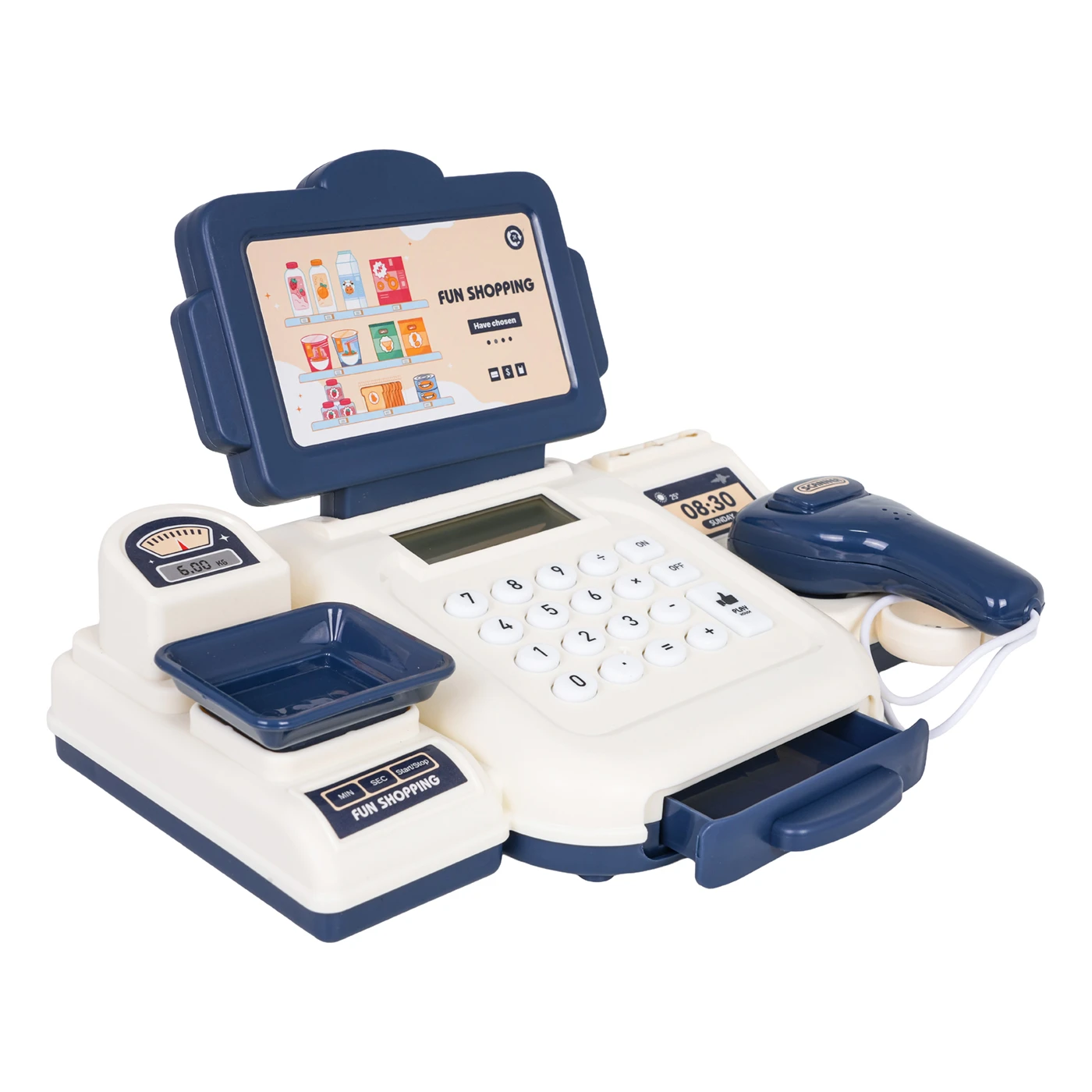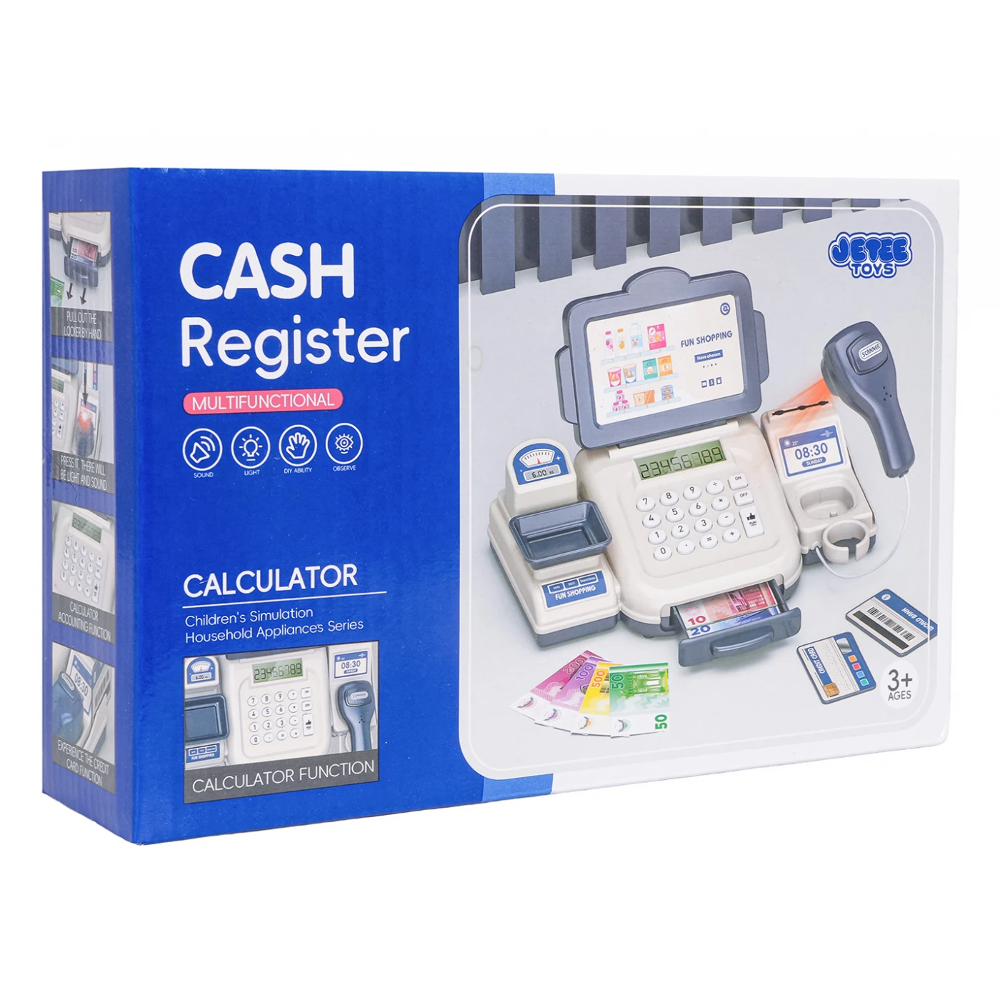 Interaktiivne kassa koos lisatarvikutega – kassas on kaal, avatav rahasahtel, kalkulaator, maksekaart ja skanner. Skanneril on heli- ja valgusfunktsioonid. Kalkulaator piiksub iga nupu vajutamisel.