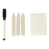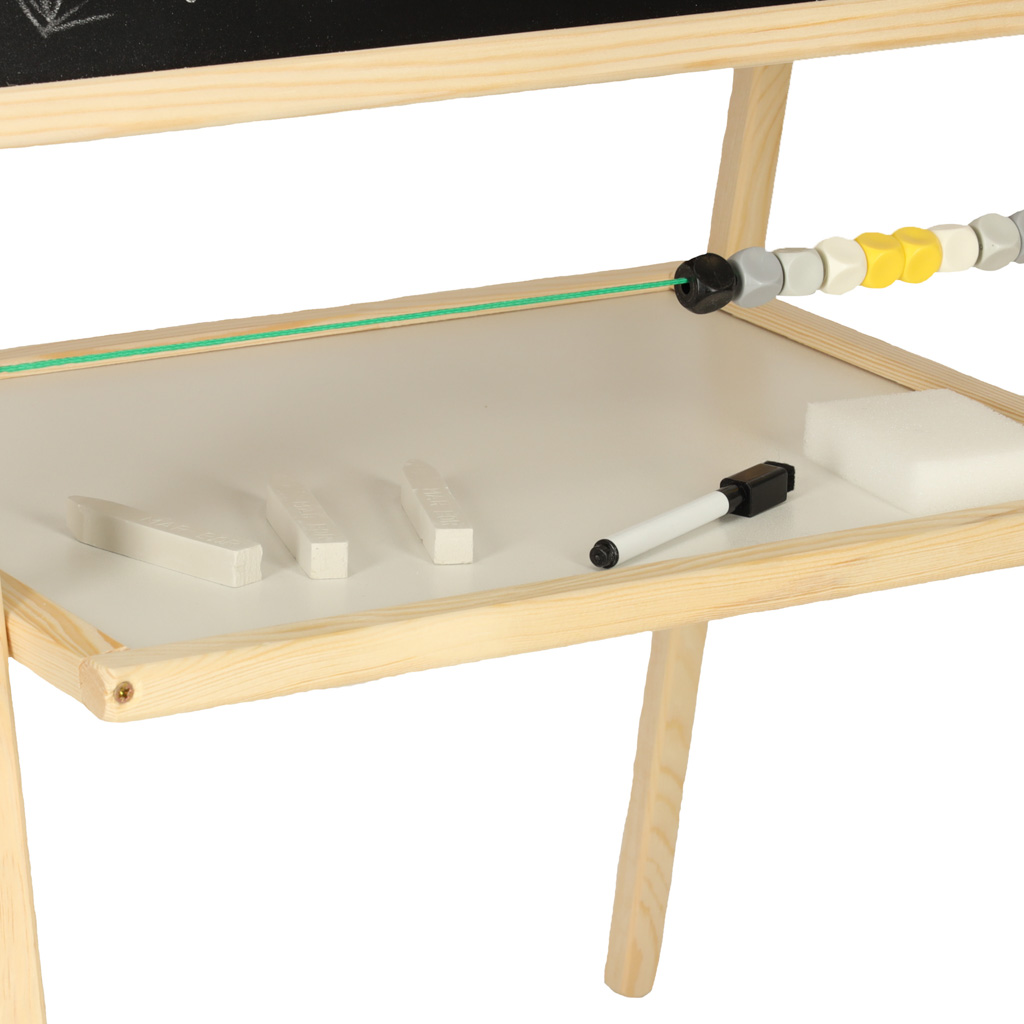 See puidust kuivkustutatav õppetahvel ühendab kriidi ja magneti funktsioonid, et toetada kirjutamis- ja arvutamisoskuste arengut. Tahvlil on arvelaud, riiul tarvikute jaoks ja tarvikute komplekt: kolm kriiti, marker, kustutuskumm ja tähekujulised magnetid.
