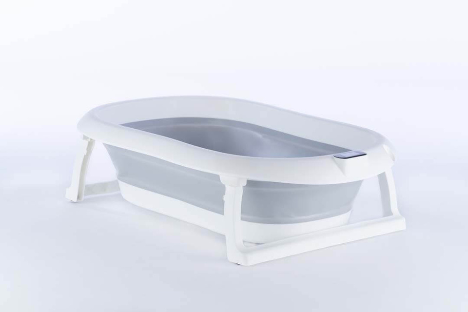 Kokkuvolditav beebivann termomeetri ja istmega, hall