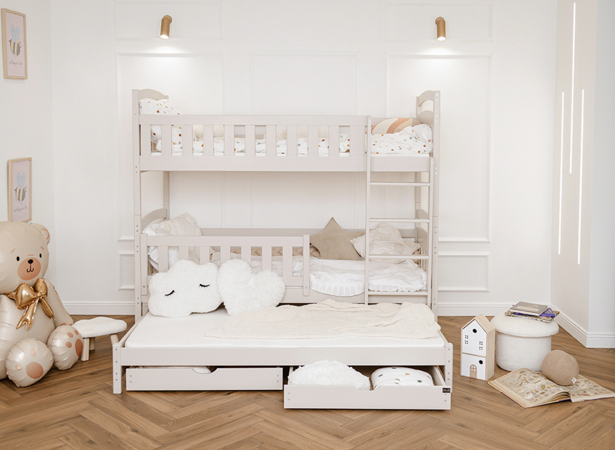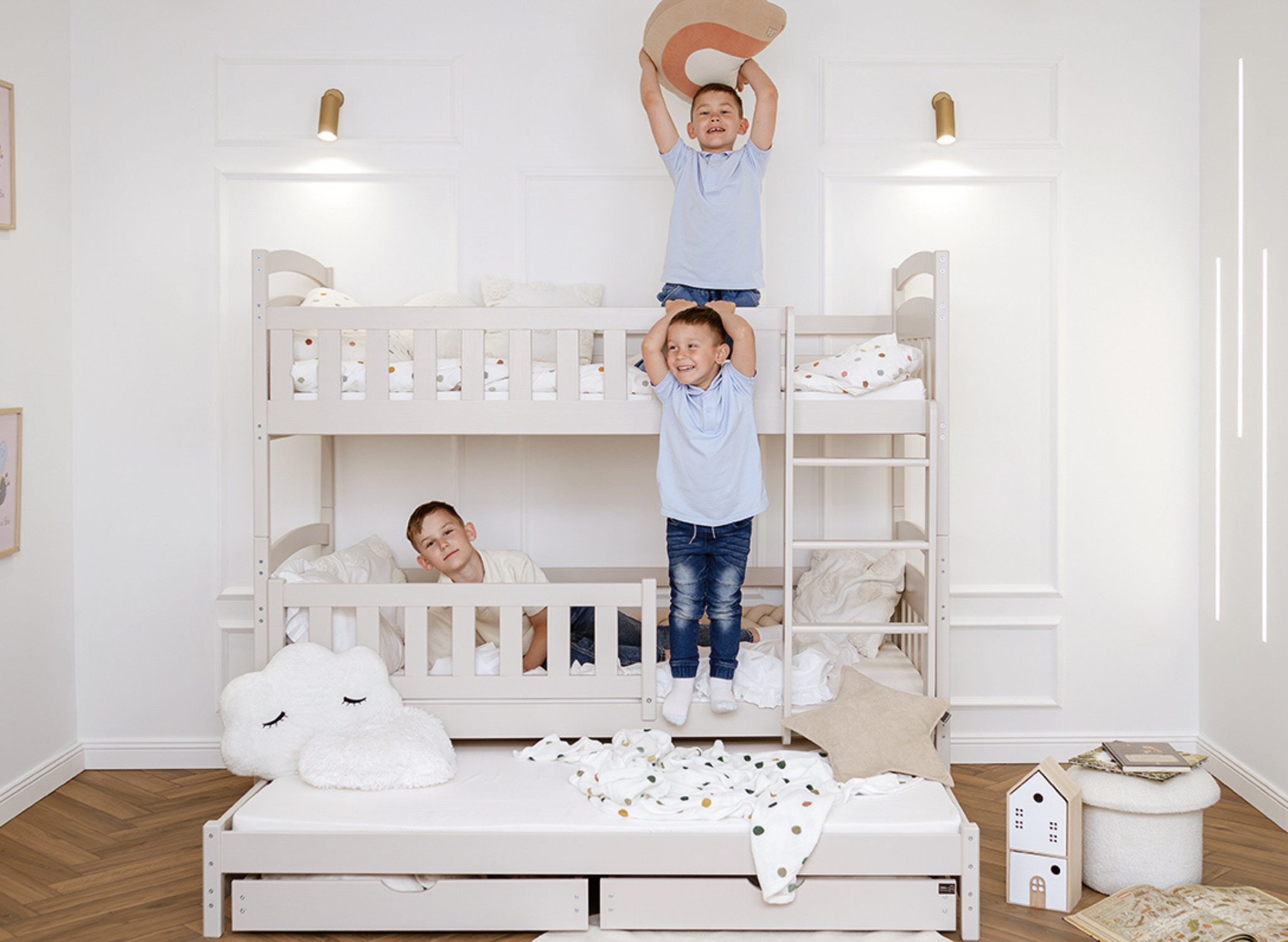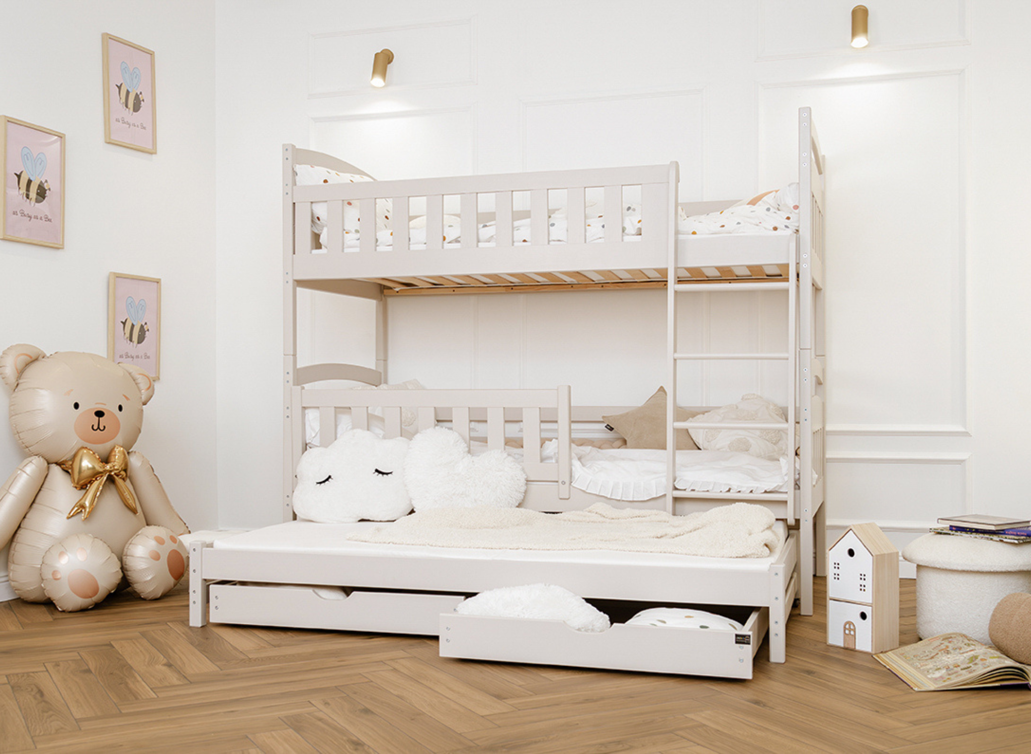 Värvimine on üks kõige olulisemaid etappe lastevoodi valmistamisel. Seetõttu kontrollib tootja pidevalt oma värvipartnereid. Viimistlus vastab nõudele EN 71-3: 2019. Värvitud on voodid veebaasil olevate värvidega.