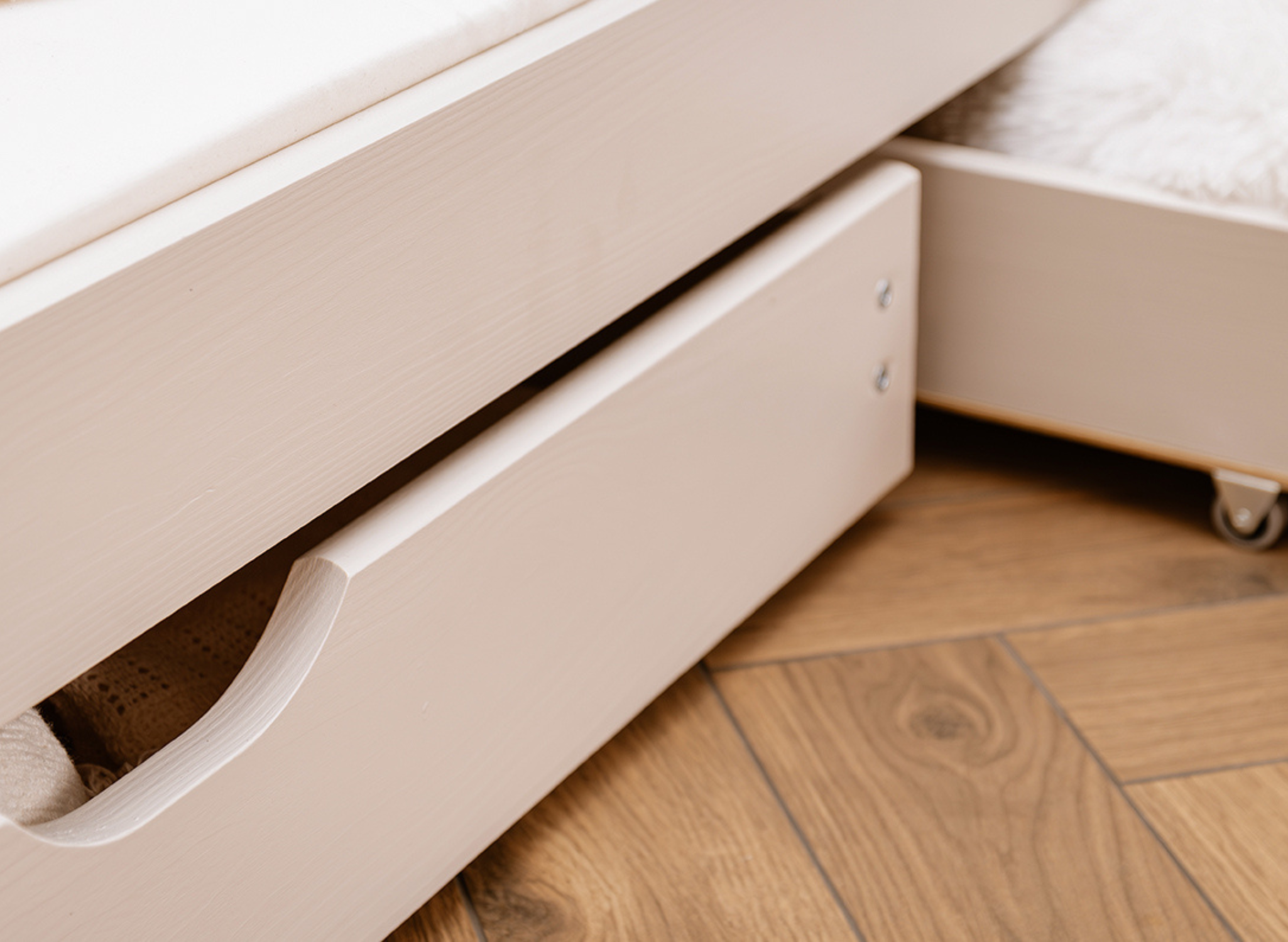 - Suurepärased sahtlid asjade paigutamiseks, kummist ratastega