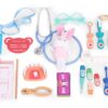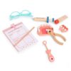 Komplekt sisaldab 28 realistlikku osa – sealhulgas stetoskoopi, süstalt, termomeetrit, prille, eemaldatavate hammastega proteesi, hambapeeglit, mänguravimeid, ID-kaarti, patsiendikaarti, töökalendrit, sidet, hambaharja ja mängurahatähti.