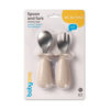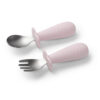 Ohutu söögiriistade komplekt väikelapsele sobib ideaalselt lusika ja kahvli kasutamise õppimiseks. Komplekt on valmistatud kvaliteetsest roostevabast terasest ning selle käepidemed on libisemiskindlast silikoonist.