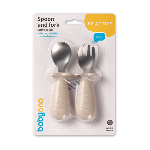 Ohutu söögiriistade komplekt väikelapsele sobib ideaalselt lusika ja kahvli kasutamise õppimiseks. Komplekt on valmistatud kvaliteetsest roostevabast terasest ning selle käepidemed on libisemiskindlast silikoonist.