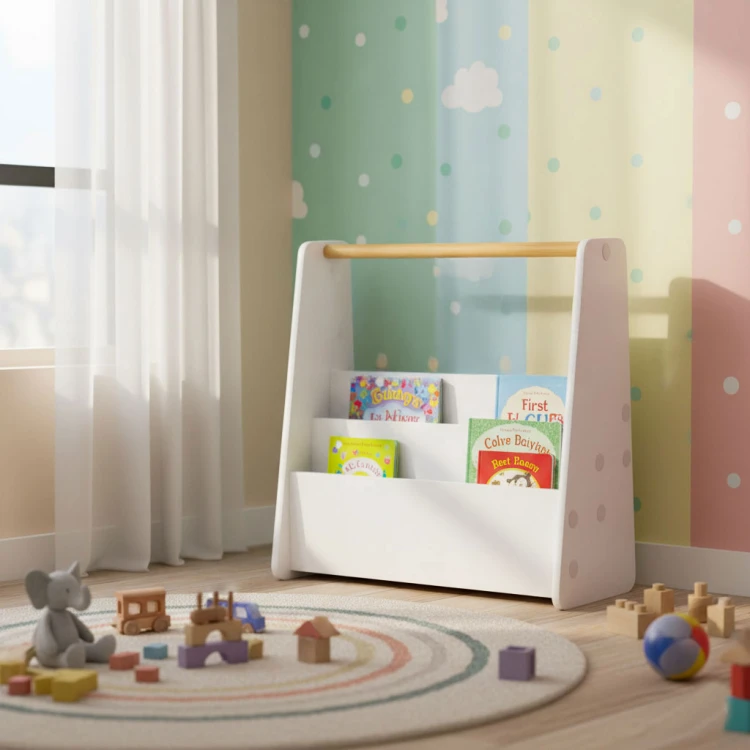 Kaunis disain ja praktilised lahendused, mis on inspireeritud Montessori meetodist. See aitab lapsel õppida iseseisvalt raamatuid valima juba varases eas, arendab lugemiskirge ja toetab arengut. Riiul on disainitud nii, et isegi kõige pisemad lapsed saaksid oma lemmikraamatuid hõlpsalt kätte.