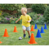 Treeningkoonuste komplekt palliga sobib ideaalselt aktiivseks mänguks nii õues kui ka siseruumides. Erksad oranžid ja sinised koonused ei jää märkamatuks.