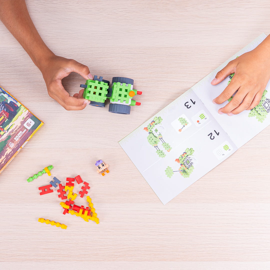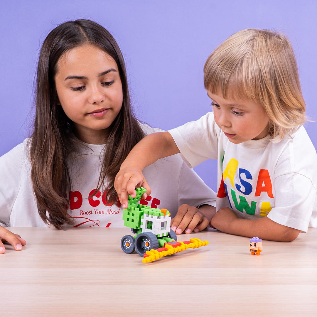 Komplekt sisaldab 50 painduvat ja värvilist osa kombaini ja Tommy figuuri loomiseks.
