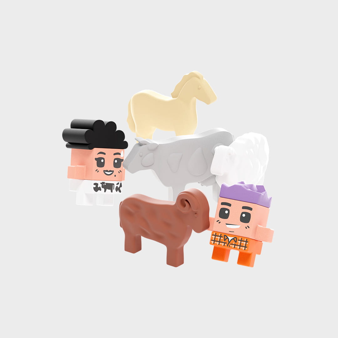 Komplekt sisaldab 100 painduvat ja värvilist detaili, mis võimaldavad ehitada kogumiskaste, põllumaa osa ja talumaastiku elemente. Talunikufiguuride ja armsate loomadega muutub iga mängusessioon ainulaadseks ja kaasahaaravaks looks.