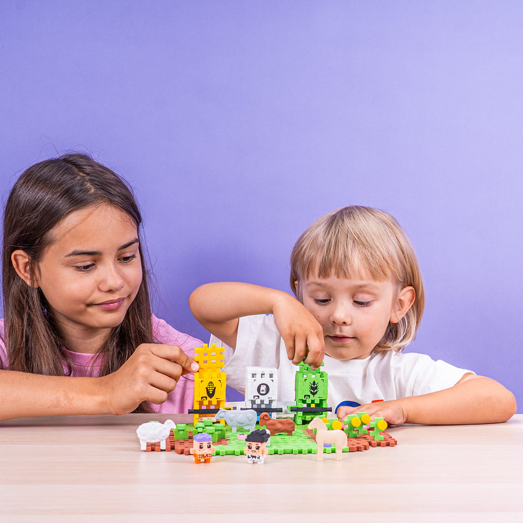Komplekt kutsub lapsed suurte saakide ja maapiirkondade kohustuste maailma. Ehita kolm värvilist kogumiskasti – üks piima, üks maisi ja üks teravilja jaoks – ning taasta taluelu rütm.
