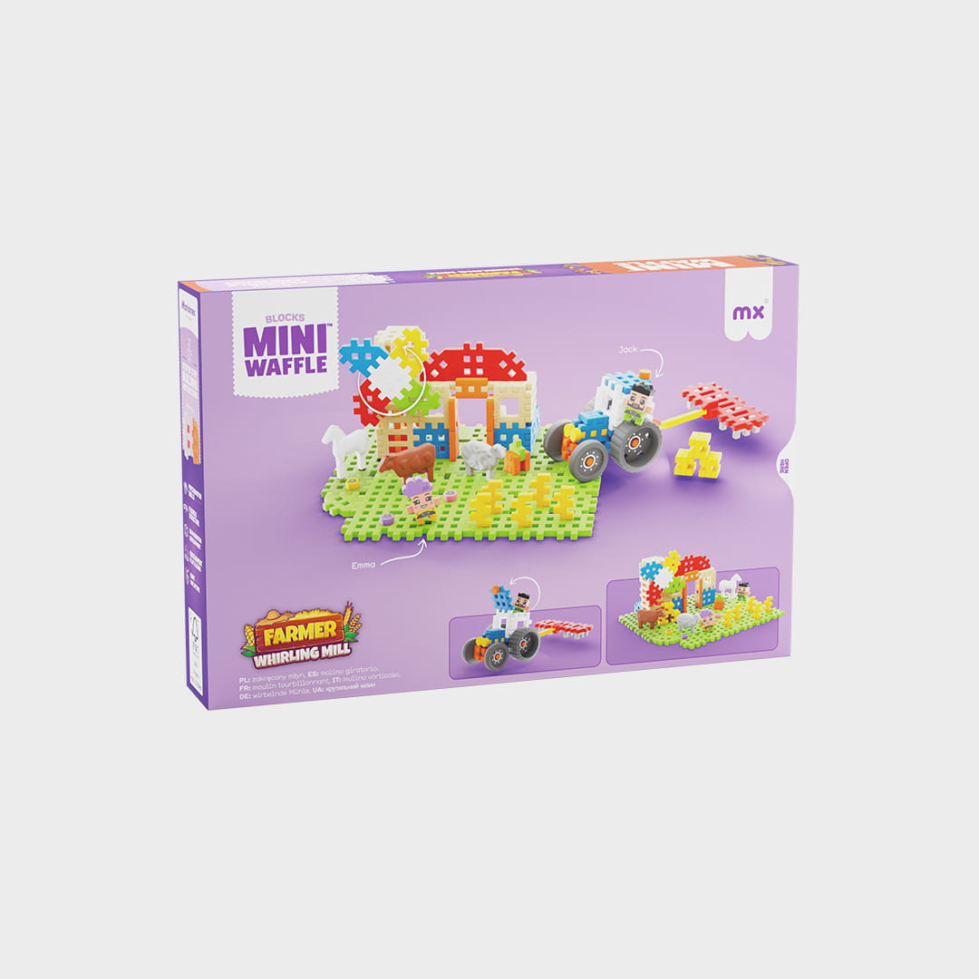 Mini Waffle Farmi äärelinnas seisab vana, kuid täielikult toimiv tuulik, mille labad pöörlevad maatuule rütmis. Lähedal on hubane maja, avatud põllud ja rõõmsameelsed loomad – lambad, lehm ja hobune. Siin töötavad farmerid Emma ja Jack kõrvuti, kasutades oma usaldusväärset masinat pinnase ettevalmistamiseks uute saakide jaoks. Iga päev on ilus tasakaal traditsioonide, moodsa põllumajanduse ja loodusega harmoonia vahel.