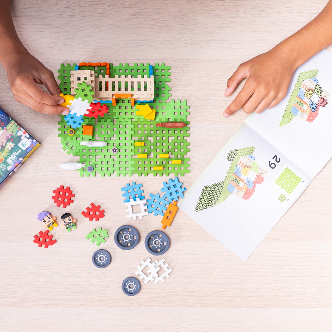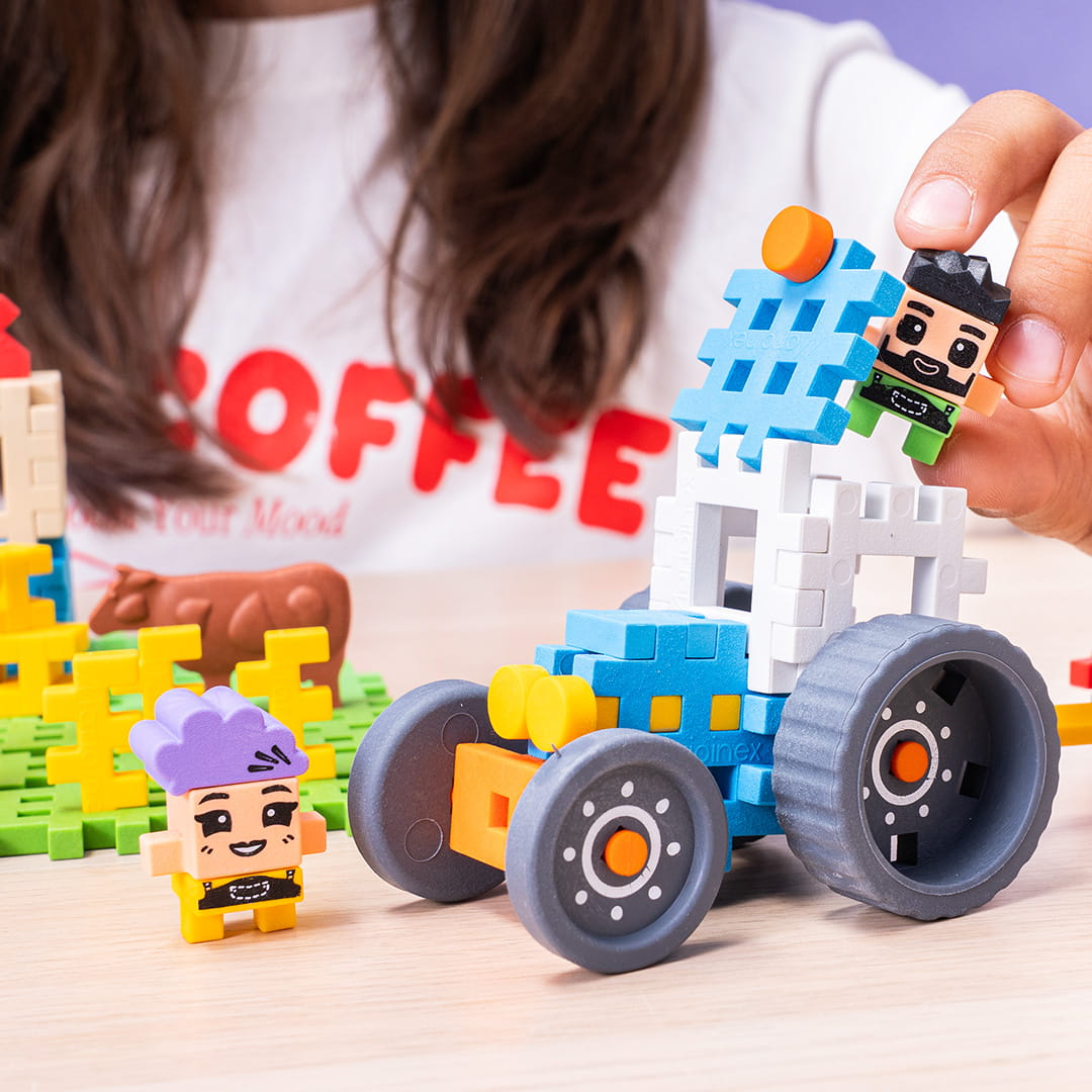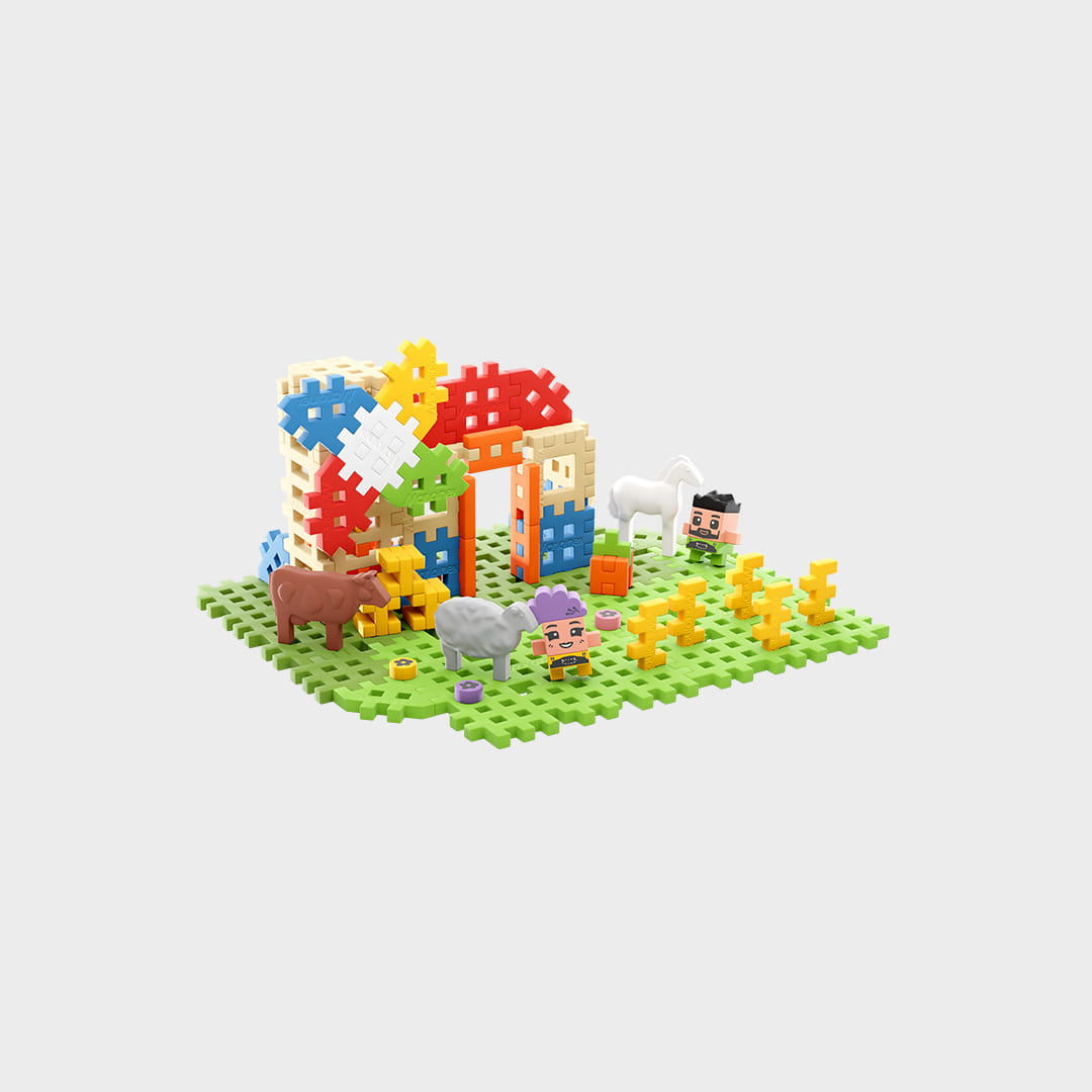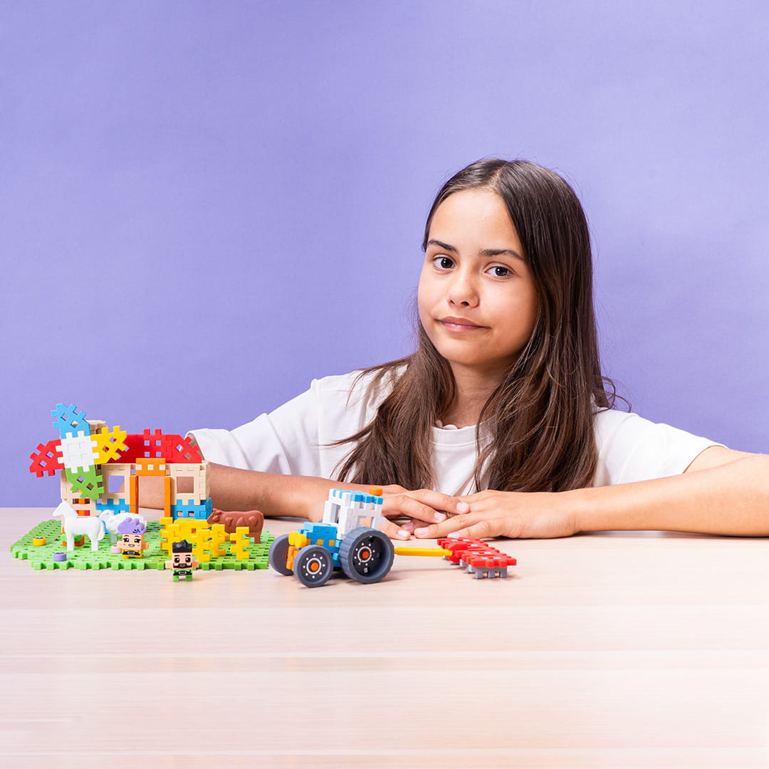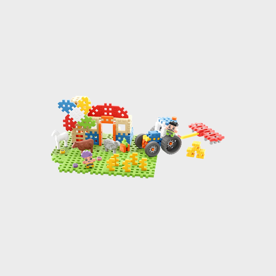 Komplektiga saavad lapsed luua pöörleva tuuliku, maamaja, põllutöömasina ja maalilise talumaastiku koos loomafiguuridega. 109 painduvat ja värvilist osa pakuvad lõputult võimalusi loominguliseks ehitamiseks ja kujutlusvõimeliseks mänguks, mis on inspireeritud taluelust.