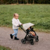 - Reguleeritav ja mugav lükkesang – hingedega sang on kergesti kohandatav, et sobituda lapse kõrgusega, tagades ergonoomilise ja mugava asendi vankri lükkamiseks.