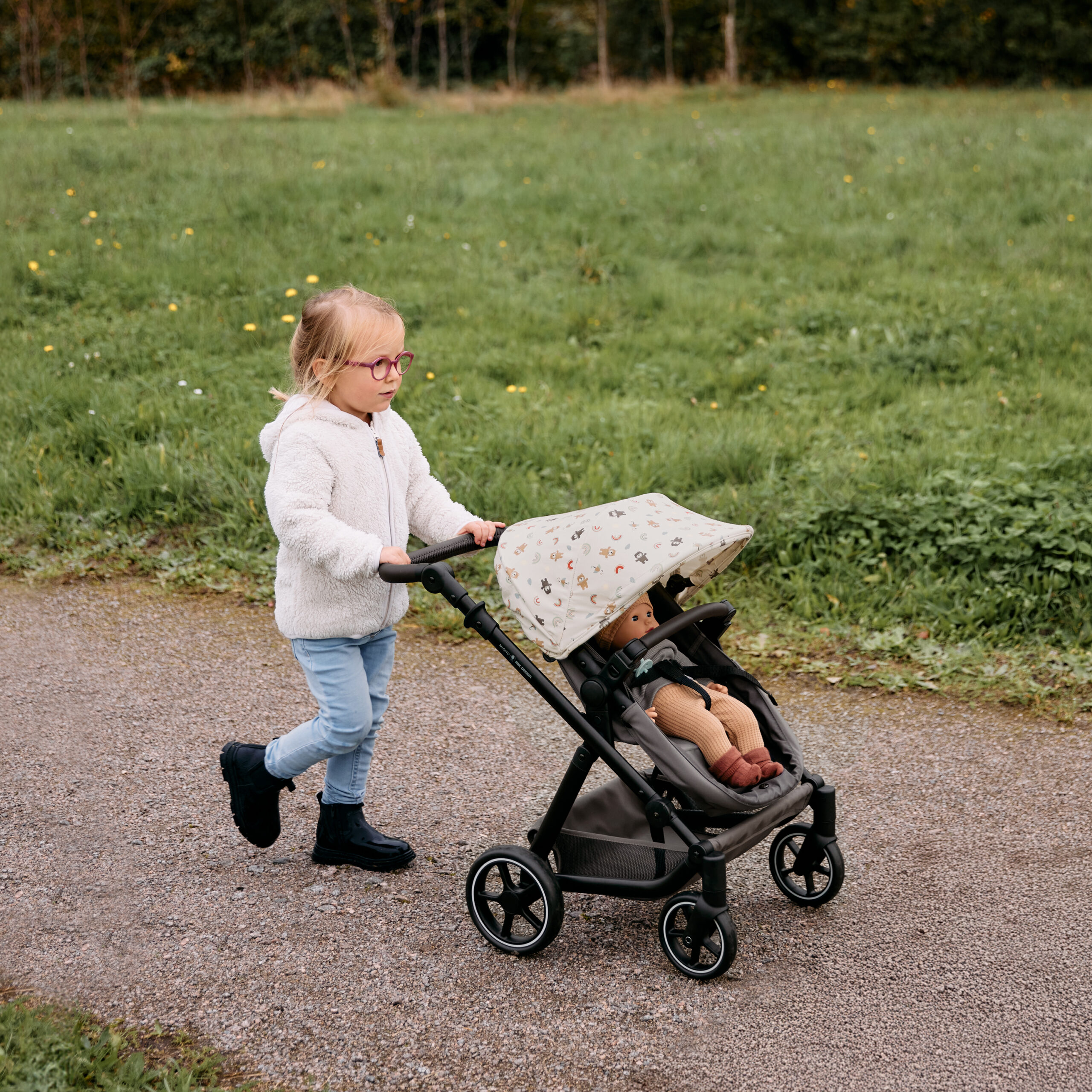 - Muudetava suunaga istumisosa – laps saab valida, kas nukuvanker on näoga või seljaga sõidusuunas.