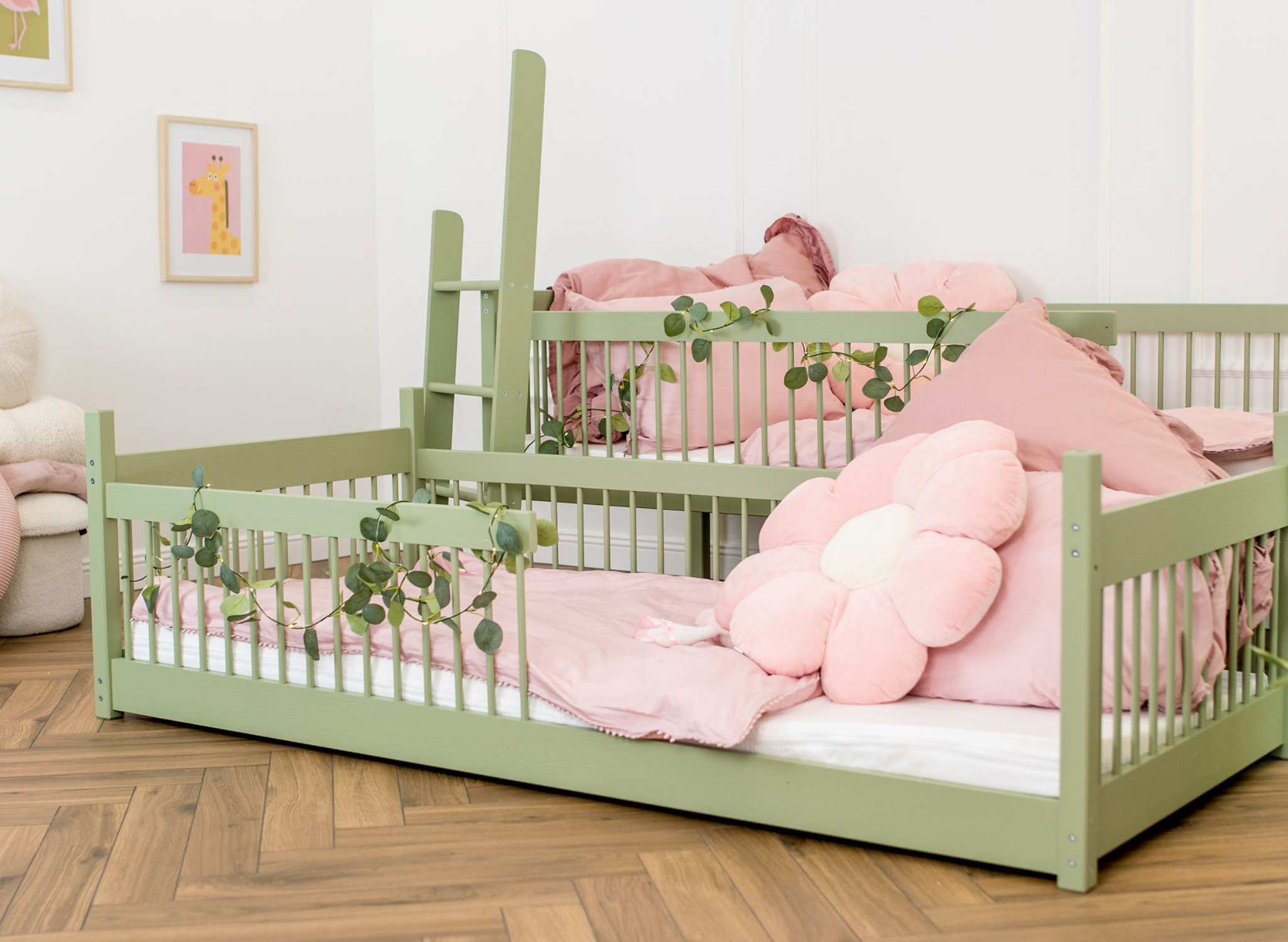 Voodi redel ja käsipuu on universaalne. Saate otsustada ise kummale poole need paigaldate.