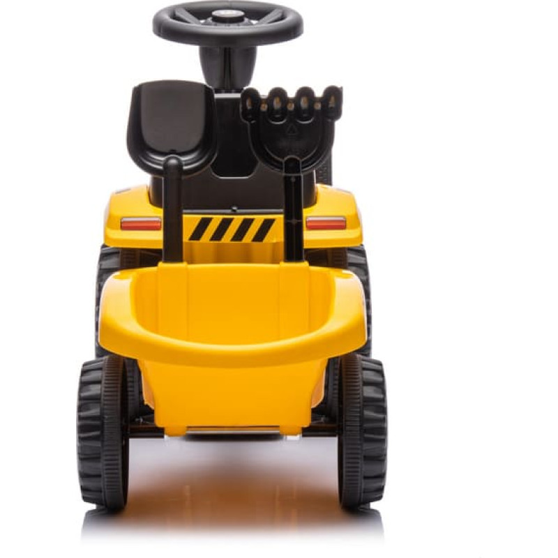 Pealeistutav laste tõuketraktor on sobilik lastele vanusest 1+. Traktori konstruktsioon on tugev ning stabiilne. Traktori rooli juures on nupud millele vajutades on kuulda signaali. Lisaks on traktoril vahva järelkäru, millega laps saab oma mänguasju või liiva vedada. Haagise saab ka traktori küljest eraldada. Haagise maksimaalne koormus 1 kg. Komplektis reha ja labidas.
