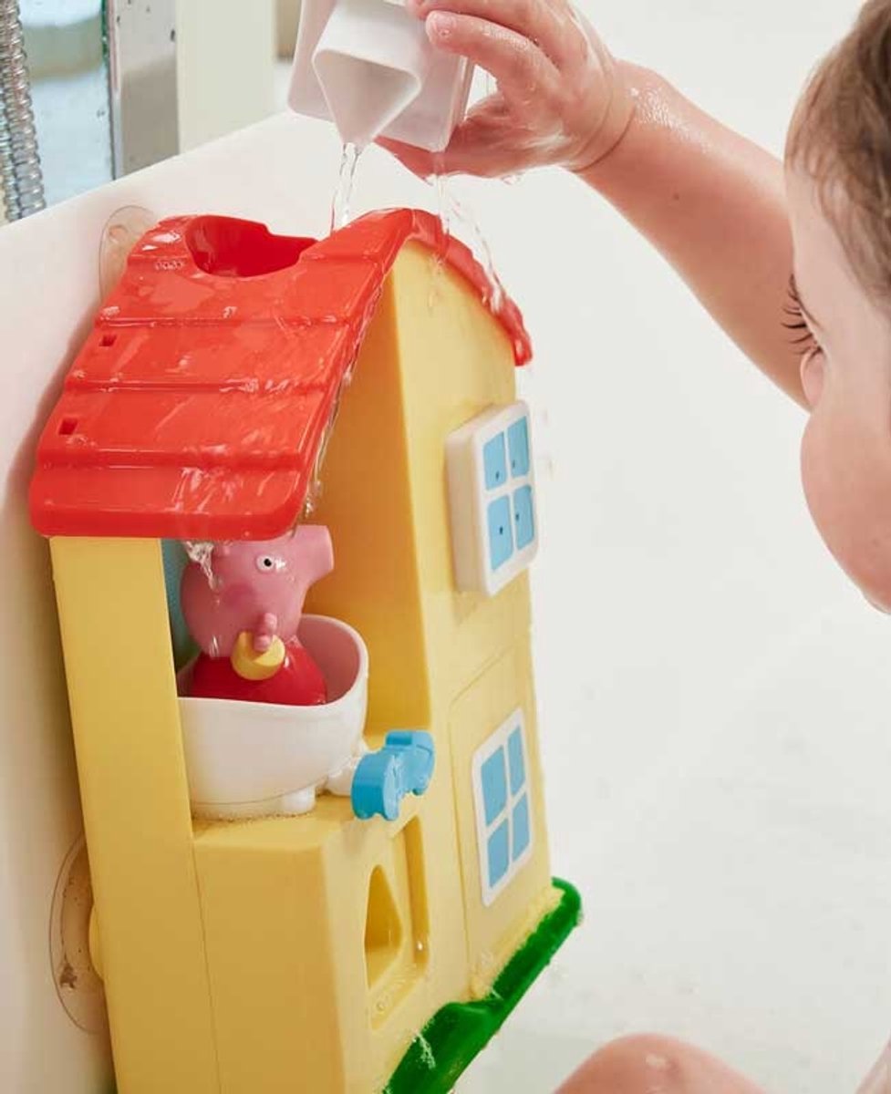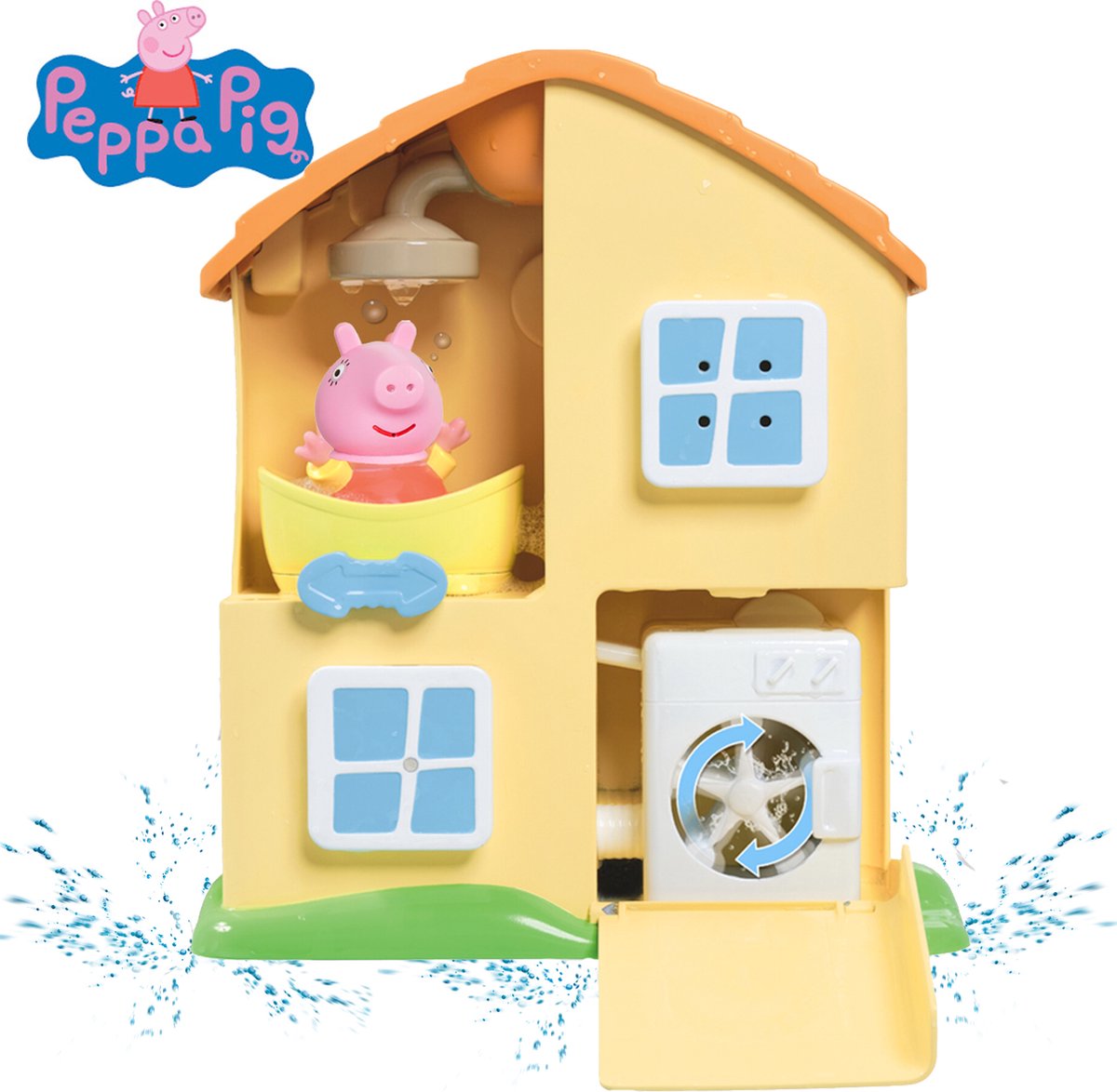 Naudi vanniaega koos Peppaga! See mängumaja kinnitub iminappade abil hõlpsalt vanni servale ja on varustatud igasuguste lõbusate mängufunktsioonidega millega pisike vannis aega saaab veeta. Maja kaks eemaldatavat akent sobivad ideaalselt vee kühveldamiseks ja teisel on augud mõnusa duši jaoks. Vala vesi maja ülaossa ja Peppa dušš lülitub sisse. Kas näed, kuidas Peppa oma dušši naudib? Ja kui on pesuaeg, siis pesumasin tsentrifuugib! Vanniaeg pole kunagi varem olnud nii lõbus!