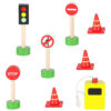 Komplekti kuulub ka liiklusmärkide komplekt, kaks liikuvate ratastega autot ja liikuva propelleriga helikopteri.