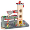 Kaunis puidust linnagaraaž on neljatasandiline – esimesed kolm on mõeldud autodele. Järgmistele korrustele jõuavad nad liftiga, mis liigub nupule vajutades. Parkla ülaosas on ka helikopteri maandumisplats. Lisaks on autoparklas tankla – iga auto peab eesseisvaks teekonnaks valmis olema. Sõidukid pääsevad parklasse ka kaldteed kasutades.
