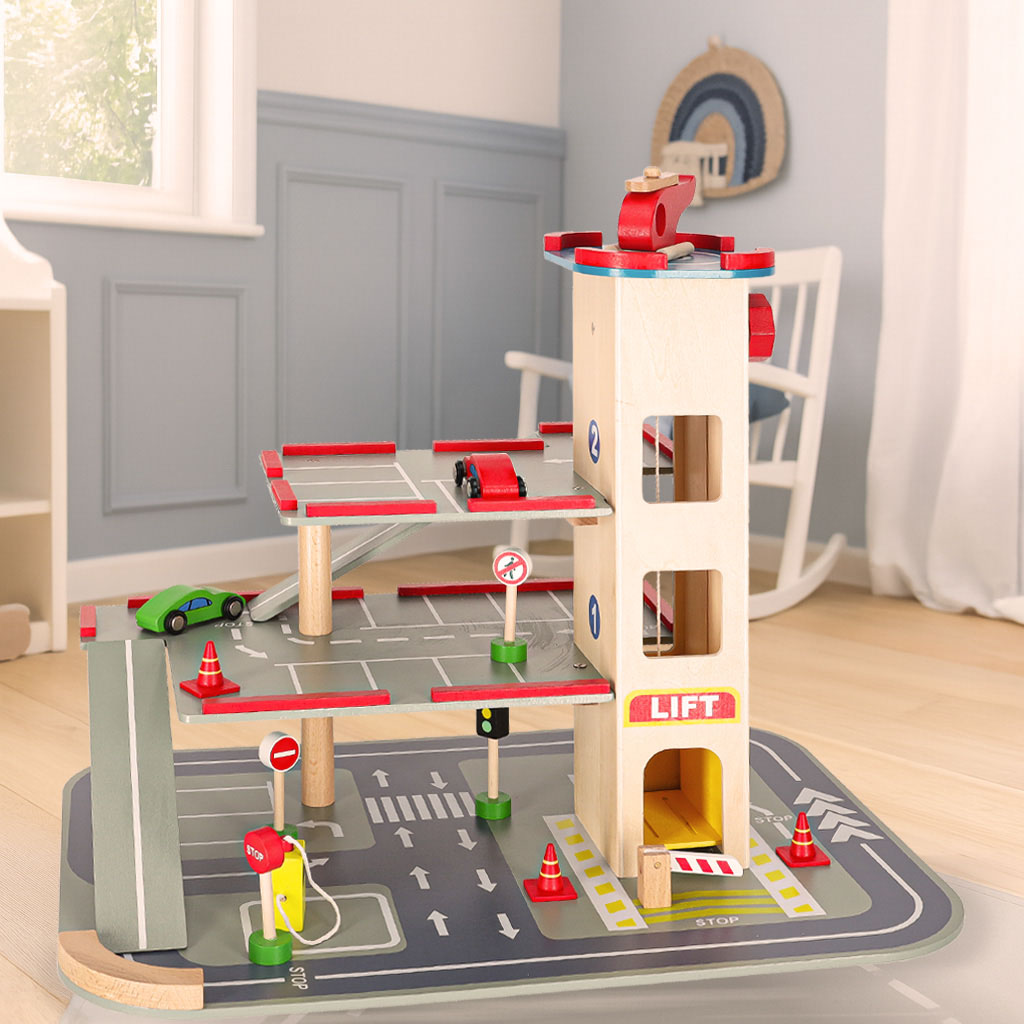Kaunis puidust linnagaraaž on neljatasandiline – esimesed kolm on mõeldud autodele. Järgmistele korrustele jõuavad nad liftiga, mis liigub nupule vajutades. Parkla ülaosas on ka helikopteri maandumisplats. Lisaks on autoparklas tankla – iga auto peab eesseisvaks teekonnaks valmis olema. Sõidukid pääsevad parklasse ka kaldteed kasutades.