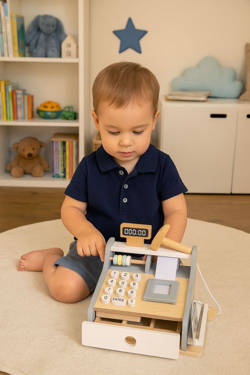 Komplekt on varustatud skänneri, kaardilugeja, makseterminali ja avatava sahtliga. Mänguasi võimaldab lastel võtta müüja rolli ja pidada oma poodi. Komplekt sisaldab münte, rahatähti, maksekaarti ja paberirulli kviitungite kirjutamiseks. Mänguasi arendab kujutlusvõimet, käelist osavust ja arvutamisoskust, pakkudes samal ajal palju lõbu ja harivat väärtust. Detailid – nagu võimalus kaarti terminalis “libistada” ja kviitungite käsitsi kirjutamine, muudavad mängu uskumatult realistlikuks ja kaasahaaravaks.