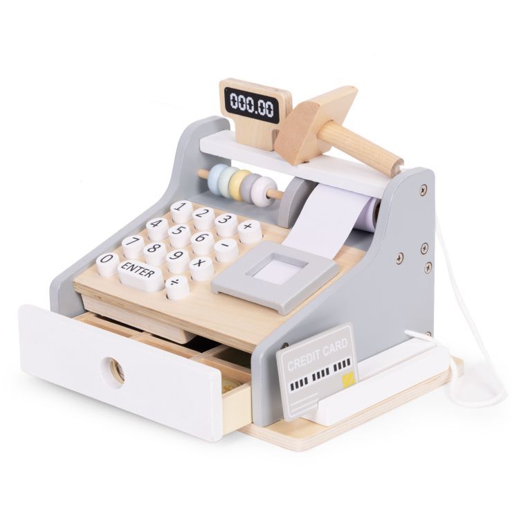 Puidust kassaaparaat + lisad, pastelne