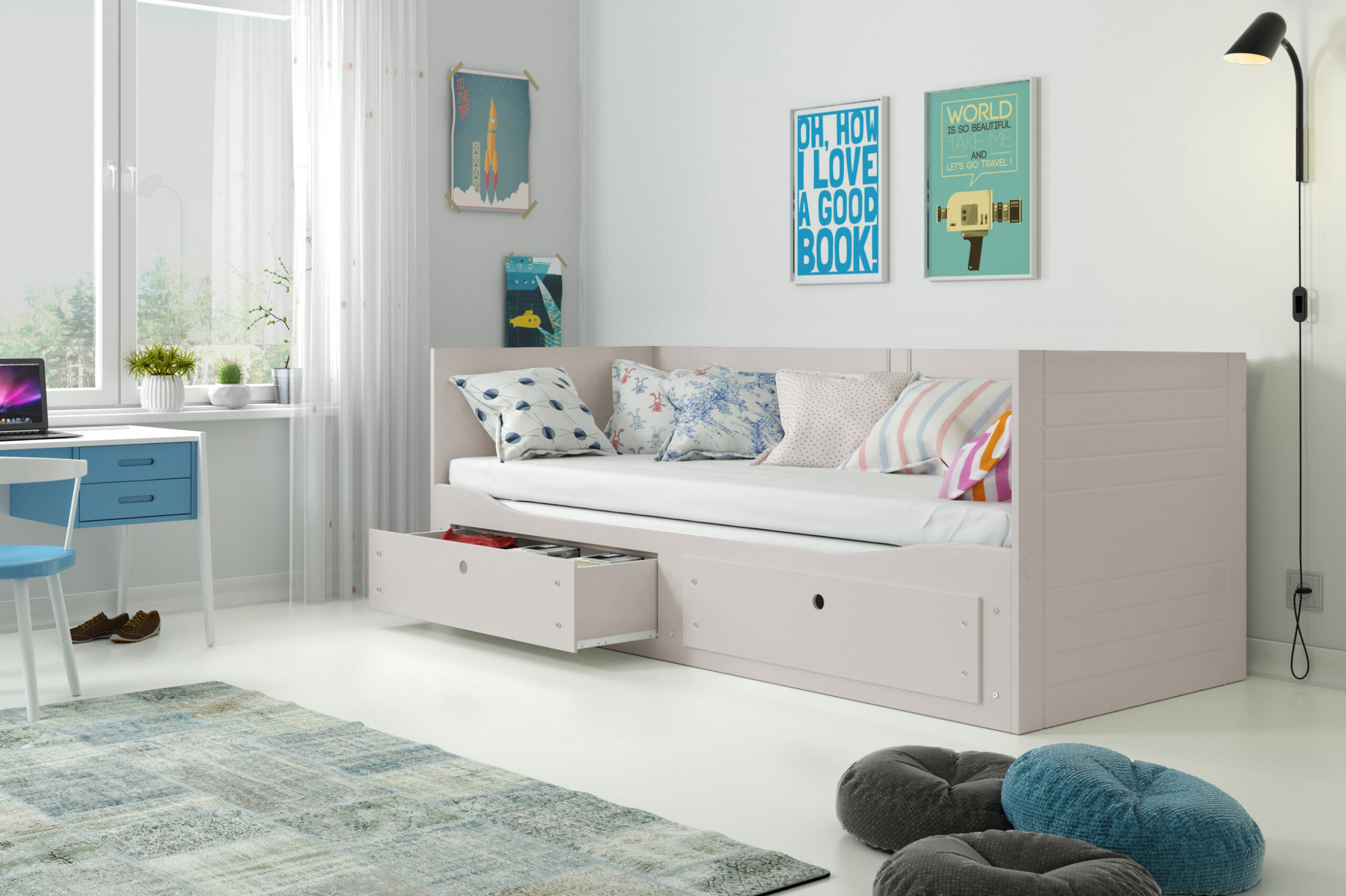 Klassikaline ning ilus “Hermes” lastevoodi on lahtikäiv – nii saab 90 cm laiusest magamiskohast lihtsa liigutuse abil 165 cm laiune voodi. Sahtleid võimalik kasutada voodipesu või muude esemete mugavaks hoiustamiseks.