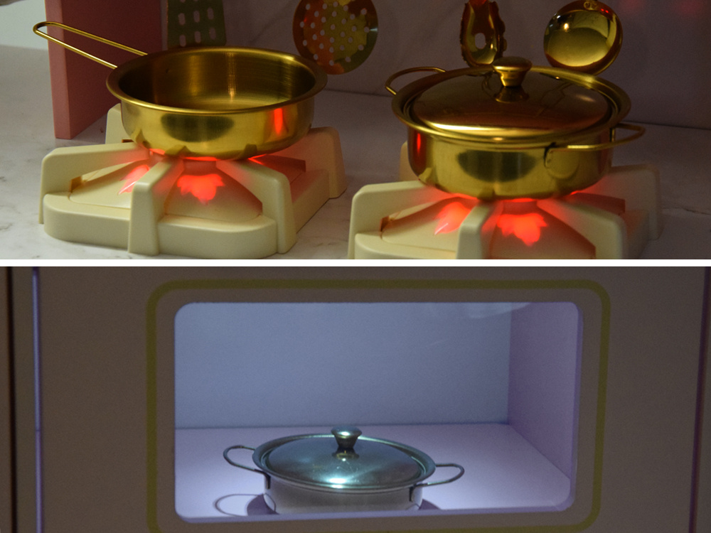 Interaktiivsed põletid: kui asetate neile nõud, helendavad need punaselt ja kuulete toiduvalmistamise või praadimise helisid.