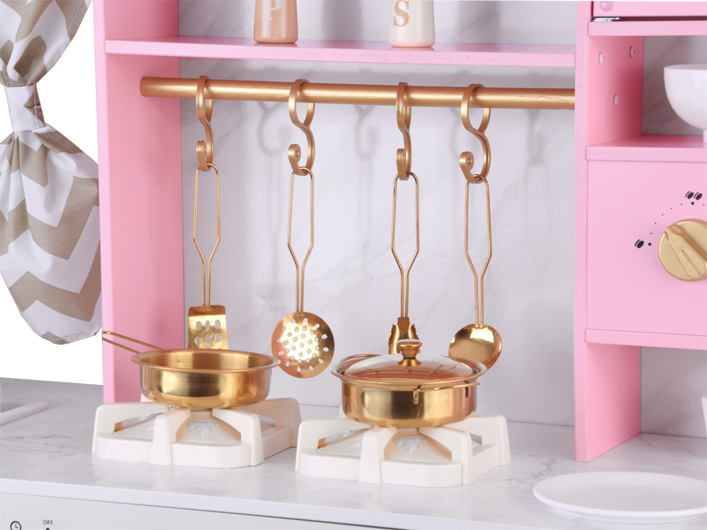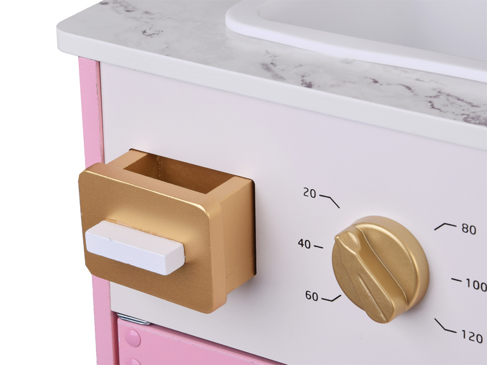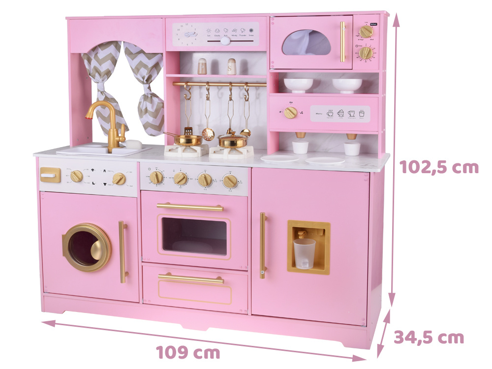 Köögis on võluvad roosad, “marmorist” ja kuldsed detailid. Köök näeb igas lastetoas ilus välja. Lisaks muudavad interaktiivsed funktsioonid mänguaja veelgi kaasahaaravamaks. Selles köögis on lihtne ette kujutada end perenaise või kokana elegantses restoranis.