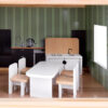 Mööbel on valmistatud puidust ning maja värvid on tagasihoidlikes, stiilsetes toonides.