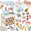 Leti saab täielikult sisustada, täites riiulid ja kastid põhitoodetega. Komplekti kuuluvad toiduained – näiteks köögiviljad ja puuviljad, kala ja mereannid, piimatooted ja suupisted.