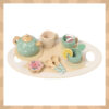 Kella-viie-tee aeg! Lastele meeldib sageli vanemaid köögis aidata, nii et nüüd saavad nad ka oma nukkudele ja kaisukarudele maitsvat teed või kohvi pakkuda. Komplekt on puidust ning imiteerib suurepäraselt tõelist kohviserviisi.
