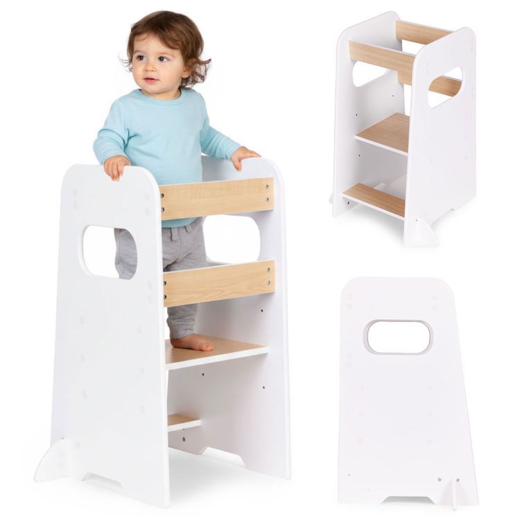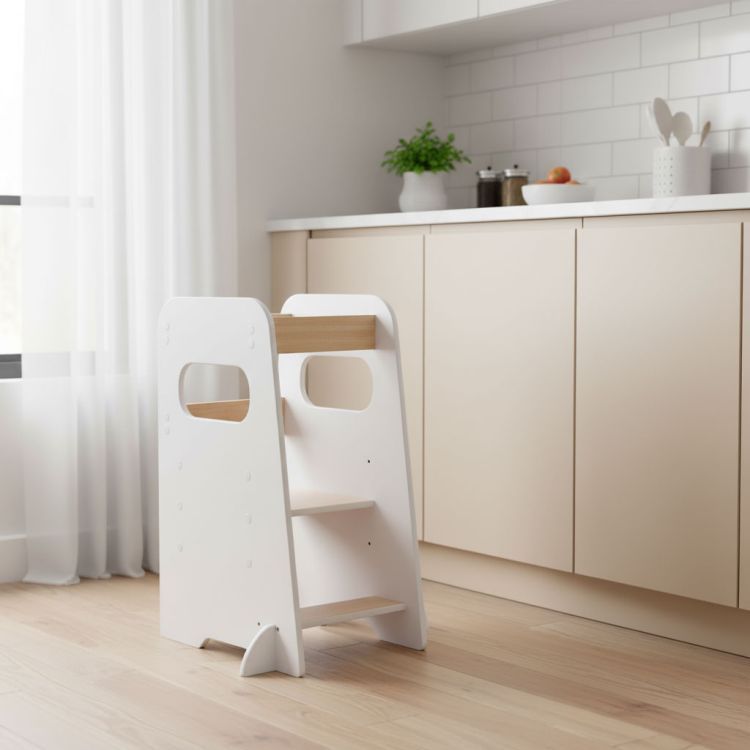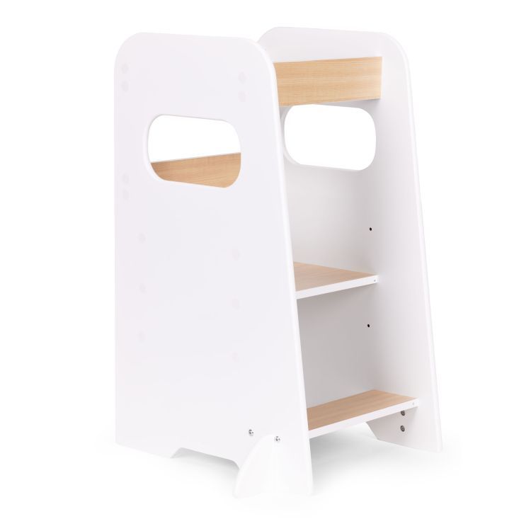 Funktsionaalne mööbliese, mis toetab laste iseseisvuse arengut. Tänu stabiilsele konstruktsioonile saab teie pisike turvaliselt osaleda igapäevastes tegevustes, nagu toiduvalmistamine või käte pesemine. Kolmeasendiline reguleeritav platvorm (23/33/43 cm) võimaldab muuta platvormi vastavalt lapse pikkusele, tagades mugavuse ja ohutuse.