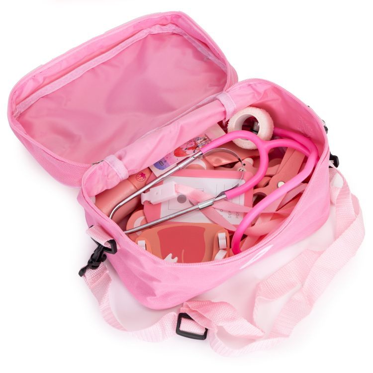 Komplekt sisaldab 24 realistlikku tarvikut, mis võimaldavad pisikesel mängida nii arsti kui ka hambaarsti rolli.