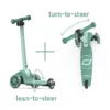 - Tõukeratta eripäraks on kahekordne roolisüsteem – tõukeratast saab juhtida kas klassikalise keerdrooli abil või oma raskust nihutades, mis muudab selle juhtimise lastele lihtsamaks ja ohutumaks