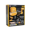 Hästi varustatud tööriistakomplekt seljakoti ja interaktiivse puur-kruvikeerajaga. Seljakotil on lukuga pealmine sahtel ja väikesed küljetaskud tööriistade hoidmiseks.